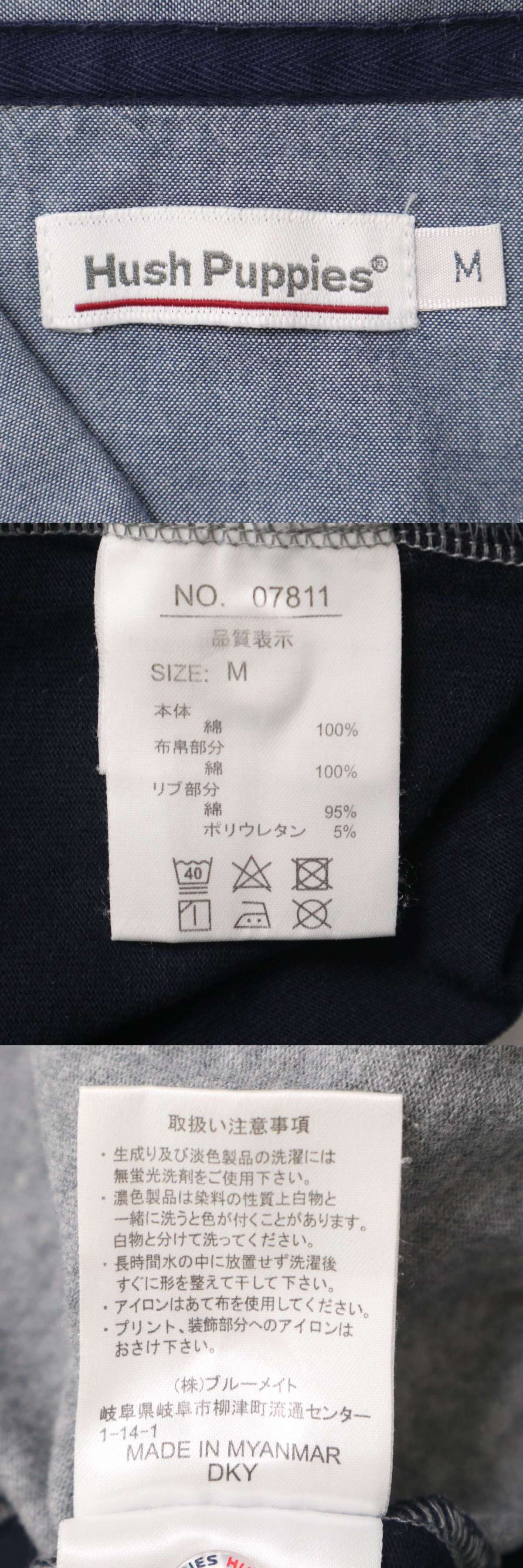 Hush Puppies ハッシュパピー 通年 ロゴ ドッグ ワッペン★ ナンバリング 半袖 ボーダー ポロシャツ Sz.M メンズ 灰 グレーの商品説明