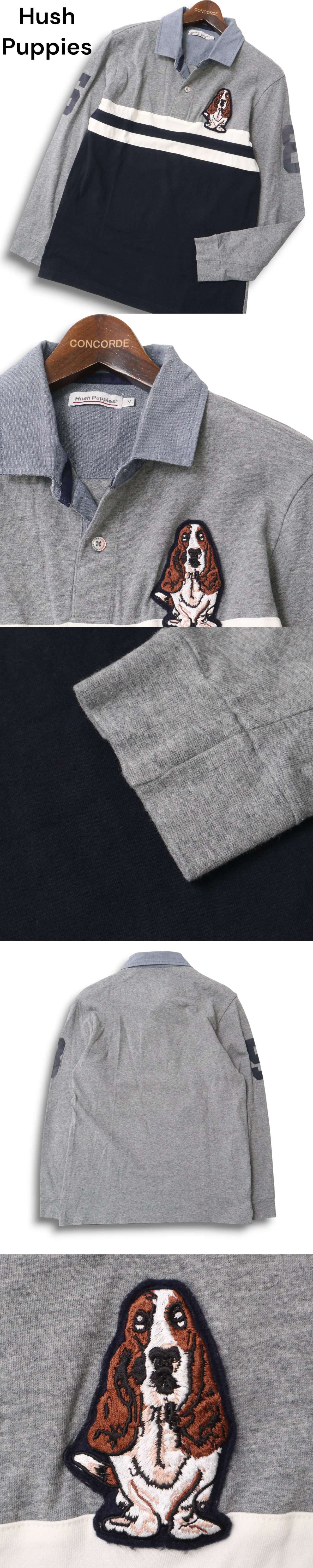 Hush Puppies ハッシュパピー 通年 ロゴ ドッグ ワッペン★ ナンバリング 半袖 ボーダー ポロシャツ Sz.M メンズ 灰 グレーの落札結果