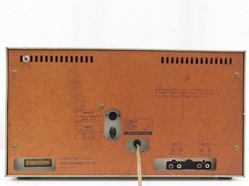 ■メーカー : AKAI ■型番 : GX-77 ■外径寸法 : W440×H244×D227mm ■重量 : 17kg 【商品の状態 当店での確認内容】 電源は入りますが、動作しません。 ※上記により【ジャンク商品】としての出品となります。 「商品の状態」に関しましては当方主観の目安となります。外観などは中古品で個人差もありますので詳細は画像にてご判断ください。 画像にて不明な点はご質問下さい。 出品商品は画像のものですべてになります。画像に写っているもの以外は付属いたしません。 【送料 全国一律 2,980 円 沖縄、離島は別途お見積り】 ※送料がお得になるサービスです(下取りシステムのご案内です) ストア決済利用時にクレジットカードやPayPay残高/PayPayクレジットを利用の方は留意点がございますのでこちらを参照上ご利用ください。 当ストアでは商品を安全にお届け出来るよう提携運送会社と協議の上、発泡緩衝材や強度段ボールの使用等 運送会社が指定する梱包方法や資材を採用しております。 より安全にお届け出来るよう商品仕様により梱包サイズが大きくなる場合や個口数が増える事がございます。 【当ストアオークションルールを入札前に必ずご確認ください。】 【落札後の取引手順】 ・落札後は取引ナビにて、必要事項をご入力後、送信ください。 取引終了後48時間(土、日は除く)以内に入力をお願い致します。 ※ご連絡が頂けない場合は落札者様都合でのキャンセルとさせていただきます。 ・落札代金(商品代金+消費税+送料)の入金をお願い致します。 ※大型商品の場合は送料確定後の決済となる為取引ナビを入力頂き、当ストアより送料のご案内が来るまでお待ちください。(土曜、日曜、祝日の場合は翌営業日より順次ご案内いたします) ・お支払い方法はクレジットカード/PayPay残高/PayPayクレジット/PayPay銀行/ゆうちょ銀行のみです。 ※商品代金引換(代引き)のお取り扱いはしておりません。 ※領収証の発行が必要な方はご連絡ください。 ※銀行振込の際の振込手数料はご負担願います。 ・入金確認後に出荷手配を致します。 (原則入金確認後3営業日以内に発送いたしますが、大型や重量のある製品はお時間をいただく場合もございます。) ・発送は当店指定の運送会社の元払いのみでの発送となります。 ※他の運送会社、送料代引き等は致しかねます。 ※落札者様ご自身での運送会社の手配いただく事も可能ですが荷物事故の責任の所在の問題上、梱包は致しかねます。 ※店頭にお越し頂き手渡しも可能(福岡市早良区)です。ご希望の方はご落札後にご連絡下さい。 ・大型/重量物商品の送料につきましては商品の特性上、荷降ろし状況等により送料が大きく前後し運送業者に別途見積りが必要な為、早めのお問い合わせにてお見積り上、入札をお願い致します。 【初期不良の保証について】 ・商品到着後の初期動作不良、また配送中の事故による破損、不具合が有る場合は、商品発送後10日以内に当ストアまでご連絡ください。当ストアでは修理での対応を優先させて頂きますが、修理不可の場合は全額返金させて頂きます。 (商品代金+消費税+送料のお支払い頂いた金額となります) 【初期不良の保証の対象外について】 次の場合は保証の対象外となりますのご留意ください ・ジャンク商品、現状商品、難あり商品での出品商品。 ※難あり商品に関しましては動作確認時に一部動作不良が確認された商品になり、記載している動作確認以外にも、動作不良がある可能性もございます。こちらに関しましても保証対象外となりますことをご理解ください。 ・年代物のオーディオなどで、当店にてわからない範囲で部品が交換されている場合 ・楽器類の特殊機材(マイクロスコープ等)での確認までは行っておりません。気になる方は事前にご質問いただくか、入札をお控えください。 ※初期不良に関しましては【商品の状態】に記載のもの、またそれによって起因する動作不良は対象外です。 ※商品発送後10日を過ぎてのご連絡は対応が出来ませんので、商品が到着しましたらお早めに確認をお願い致します。 【メーカー保証の加入・継承】 ・未使用品、展示品やメーカー保証期間が残っている商品に関しまして、メーカー保証の加入、継承が必要な方は、落札後取引ナビ内にて当ストアにお知らせください。商品発送までにご連絡いただけない場合、メーカー保証の手続きを承れない場合があります。 【評価について】 ・評価不要の場合、必ず取引ナビの「要望欄」にてお知らせください。それ以外でご連絡をいただいた場合、対応できない可能性がございます。一度行った評価はシステム上取り消しが行えませんのでご了承ください。 【入札削除・キャンセルについて】 ・入札後はトラブル防止の為いかなる事情がおきましても入札を削除等は致しておりません。 ご検討の上入札をお願い致します。間違った際の入札額の金額訂正はご自身で行ってください。 入札額の変更方法 【入札に関しての注意事項】 ・最近イ