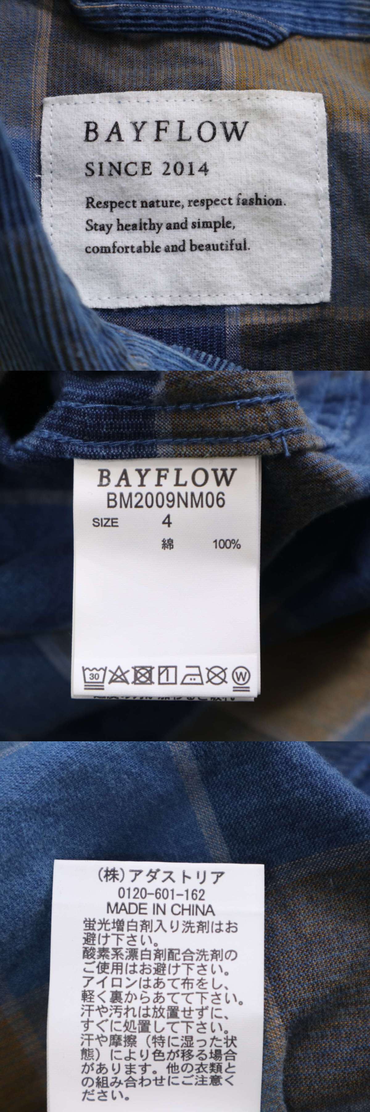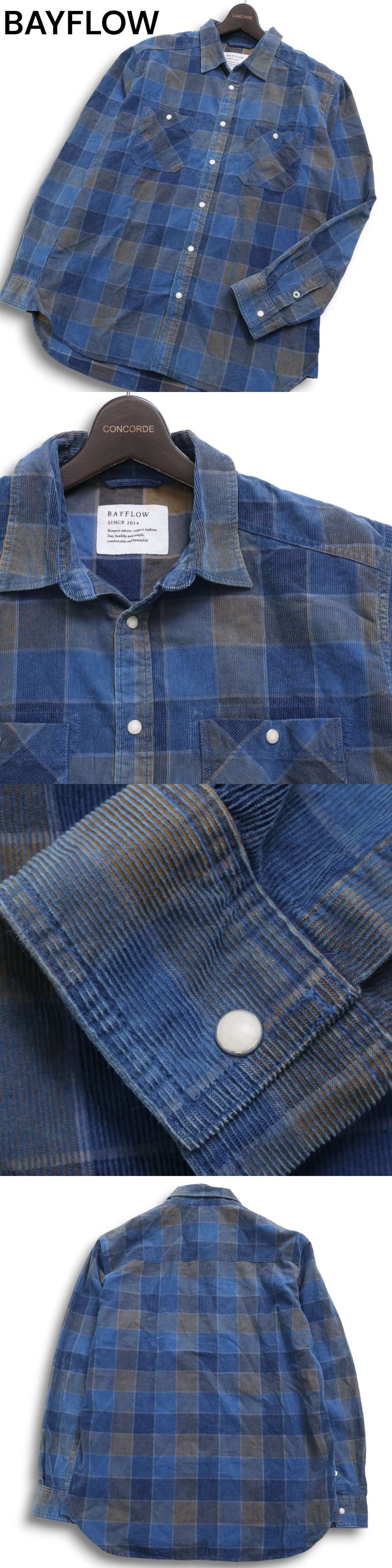 BAYFLOW ベイフロー 秋冬 コーデュロイ★ 長袖 ワーク ブロック チェック シャツ Sz.4 メンズ 紺 ネイビーの落札結果