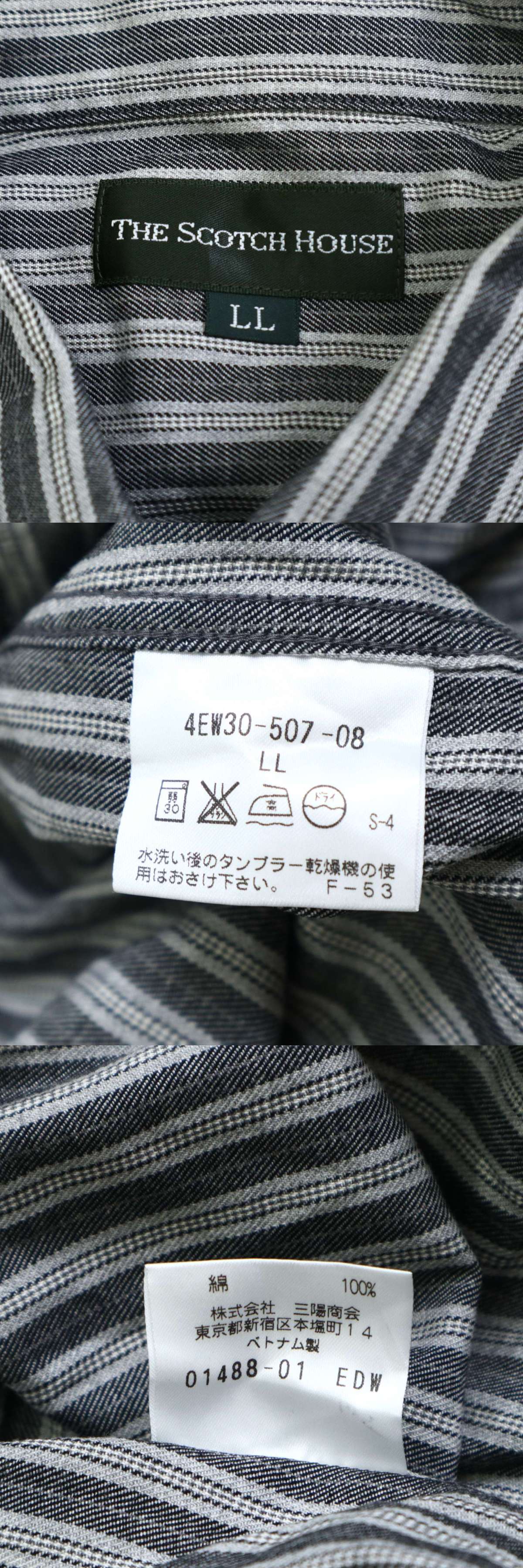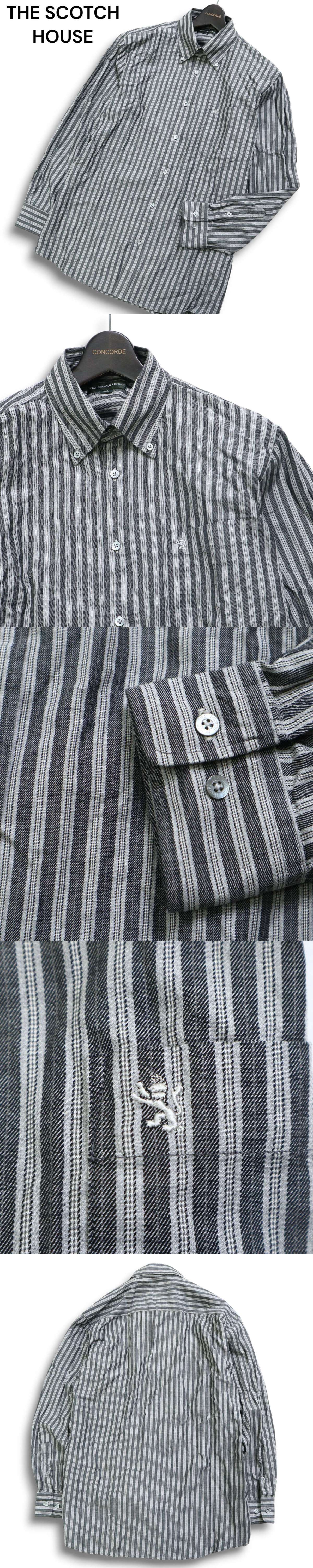THE SCOTCH HOUSE スコッチハウス 通年 ロゴ刺繍★ 長袖 ストライプ ボタンダウン シャツ Sz.LL メンズ グレー 大きいサイズの落札結果