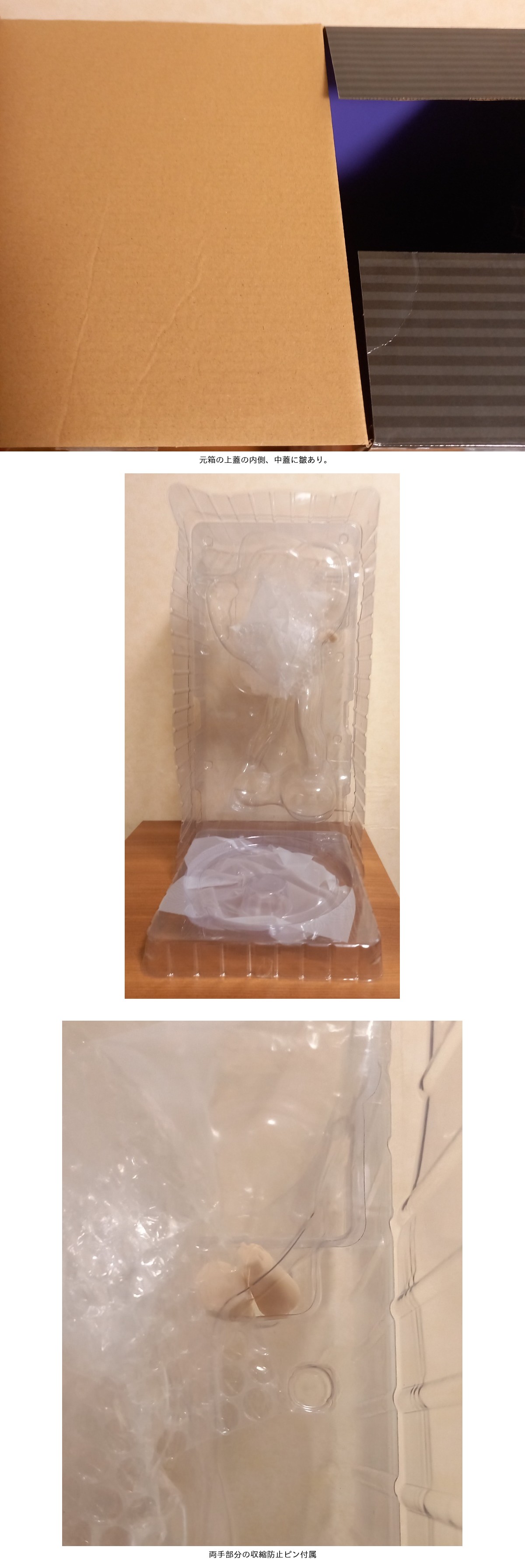元箱、ブリスターパック、付属品(台座、両手部分の収縮防止ピン)あり。