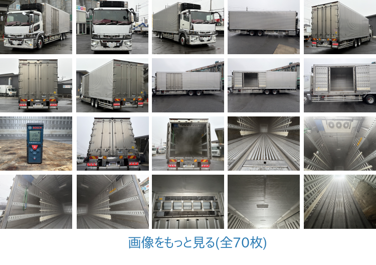 ☆DENSO製冷凍機 ☆マイナス30度設定(マイナス17度まで確認済み) ☆スタンバイ付 ☆2エバ ☆2デフ ☆サイド観音扉(鱗ステンレス) ☆サイド扉寸法:幅210cm高さ212cm ☆床素材:キーストン ☆ジョロダー4列 ☆荷箱内寸:長さ936㎝幅226㎝幅230㎝ ☆エバハウス下内高218cm ☆ラッシング3段 ☆最大積載量10800kg ☆観音扉鱗ステンレス ☆アルコア製アルミホイール ☆アドブルー ☆6R20エンジン 394PS ☆シフトパイロット ☆社外テールランプ