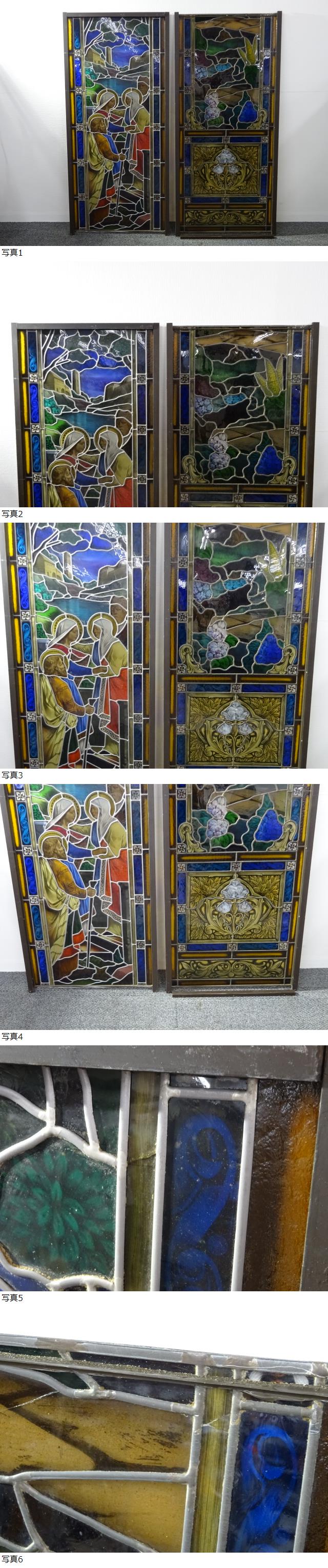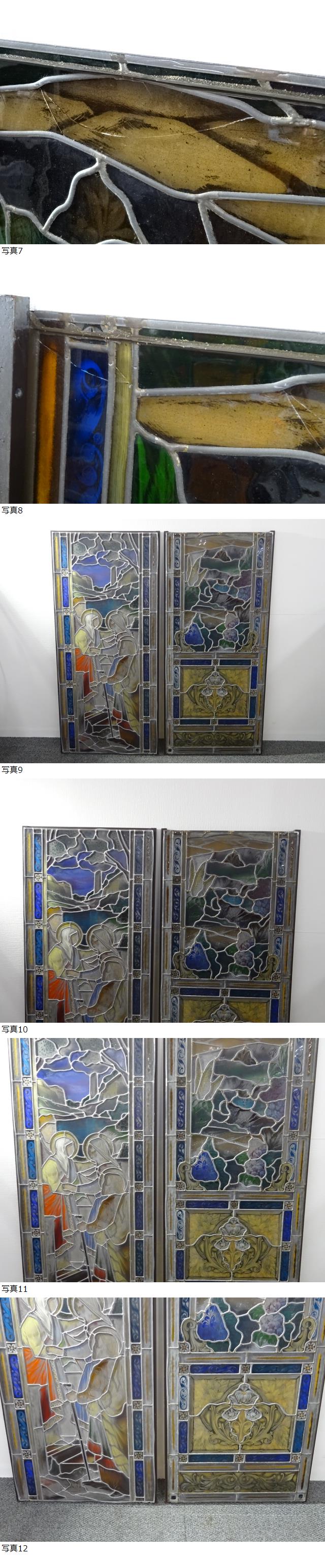 26-0377 ・ 豪華 ステンドグラス ① 上下2点セット 1点のサイズ:625×1365mm 窓枠 枠 パネル 教会 アンティーク の落札結果