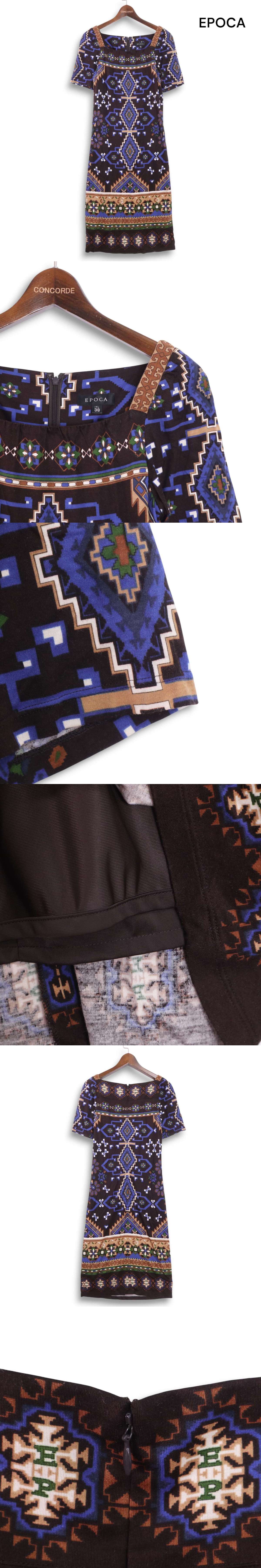 EPOCA エポカ 春夏 幾何学模様 総柄♪ 半袖 スクエアネック ロング ワンピース ドレス Sz.38 レディース 日本製の商品説明