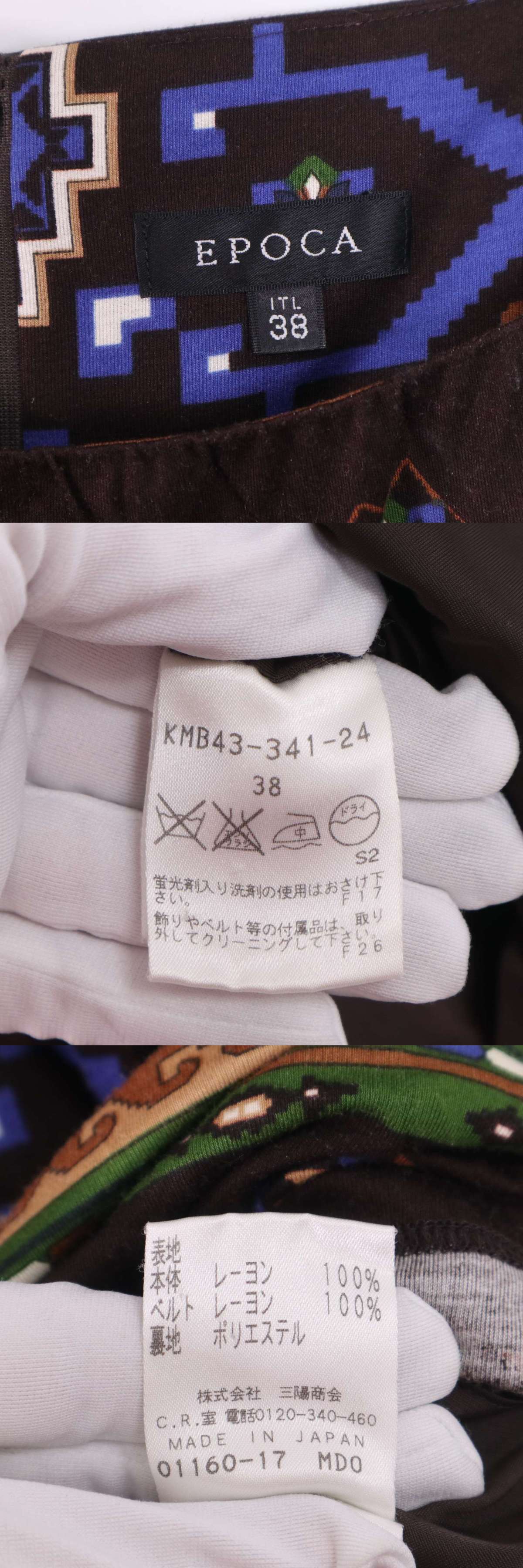 EPOCA エポカ 春夏 幾何学模様 総柄♪ 半袖 スクエアネック ロング ワンピース ドレス Sz.38 レディース 日本製の画像9