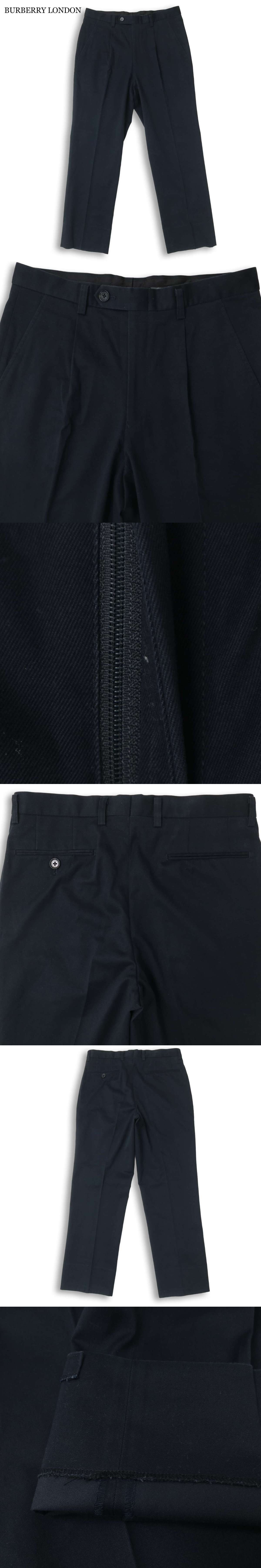 BURBERRY LONDON バーバリー ロンドン 通年★ タック テーパード パンツ スラックス 日本製 Sz.82 メンズ 紺 ネイビーの落札結果