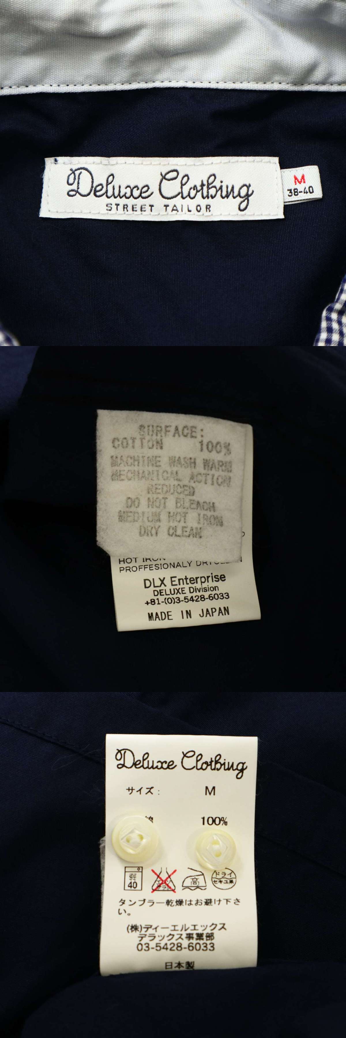 Deluxe Clothing デラックスクロージング 春夏 チェック使い★ 半袖 ボタンダウン シャツ Sz.M メンズ ネイビー 日本製の画像7