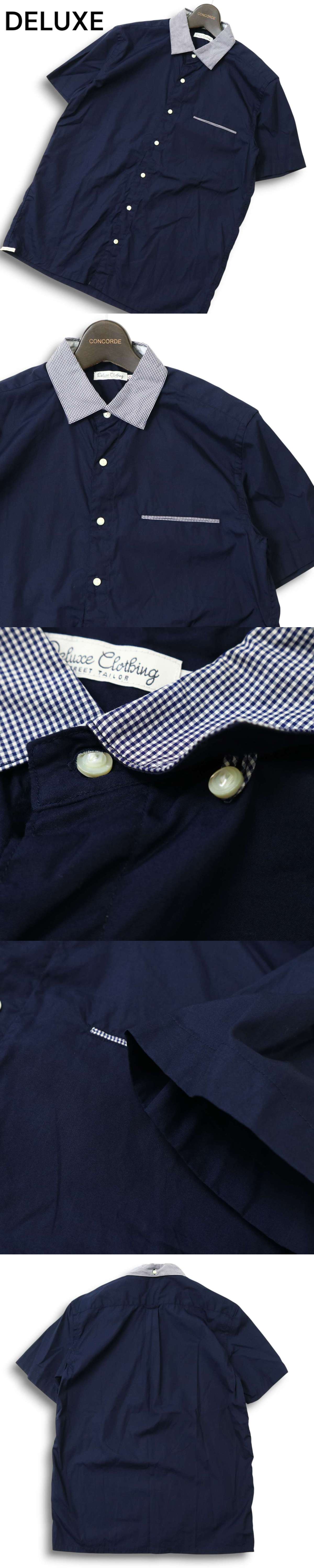 Deluxe Clothing デラックスクロージング 春夏 チェック使い★ 半袖 ボタンダウン シャツ Sz.M メンズ ネイビー 日本製の商品説明