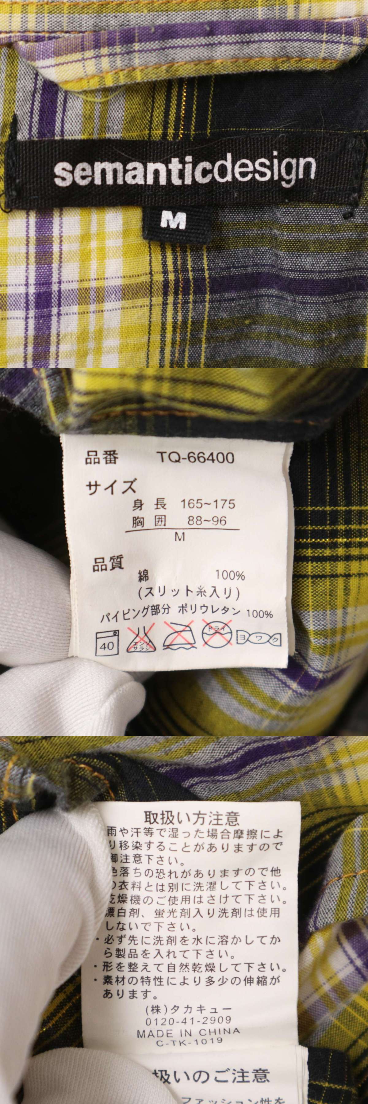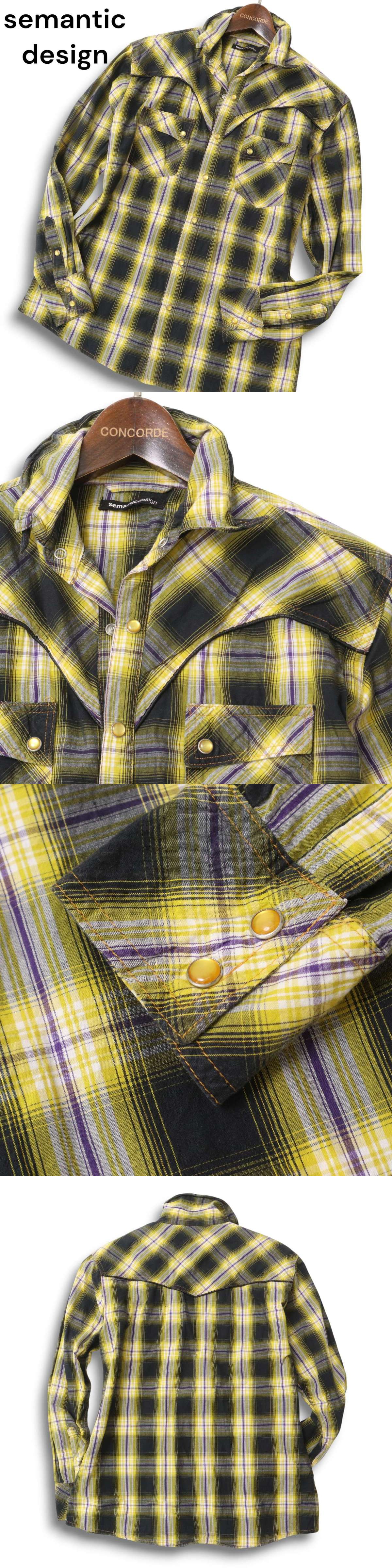 semantic design セマンティック デザイン 通年 襟ワイヤー★ 長袖 チェック ウエスタン シャツ Sz.M メンズの落札結果