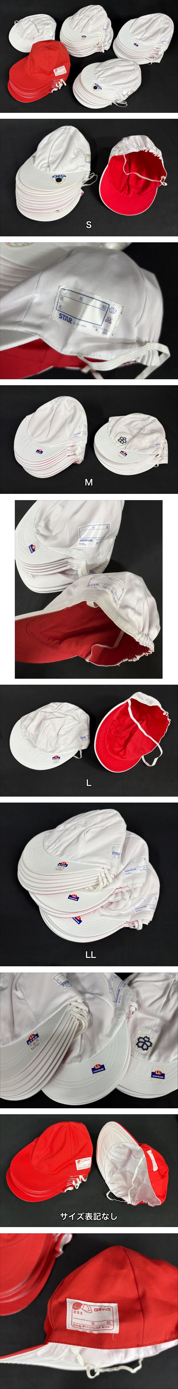 衣料品店在庫品 赤白帽子 S~LL 47点まとめ売り 学生服 体操服 体育 制服 小学生 レトロ 未使用長期保管品 1029-3*c | |||