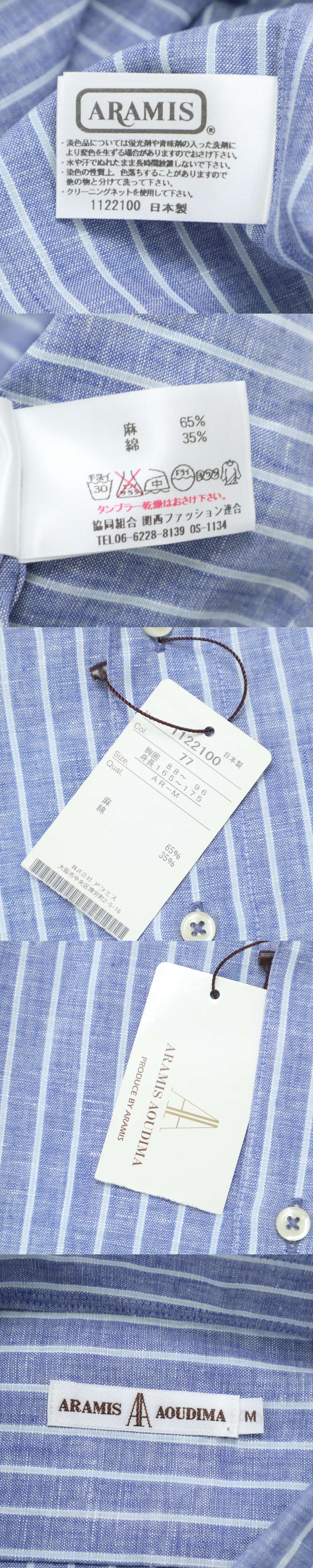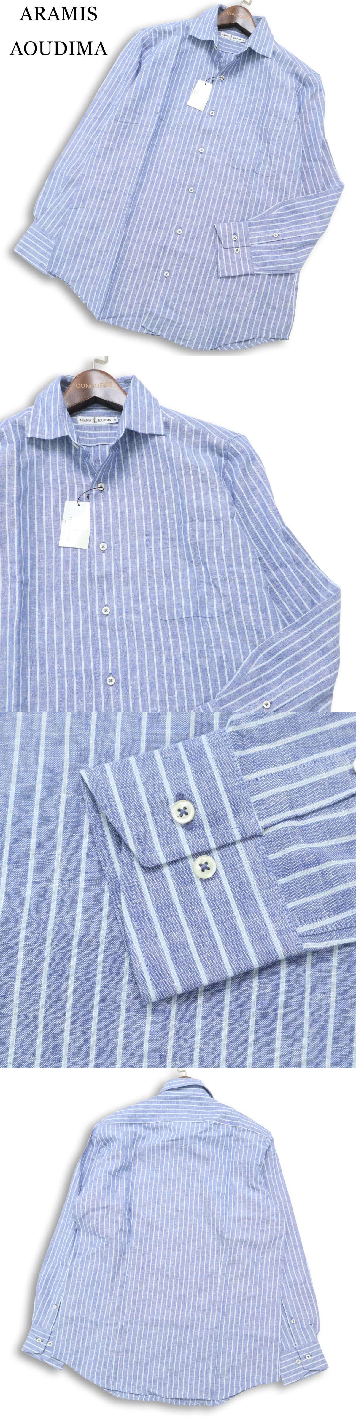 【新品 未使用】 ARAMIS AOUDIMA アラミス オーディマ 春夏 麻★ リネン 長袖 ストライプ シャツ 日本製 Sz.M メンズの落札結果