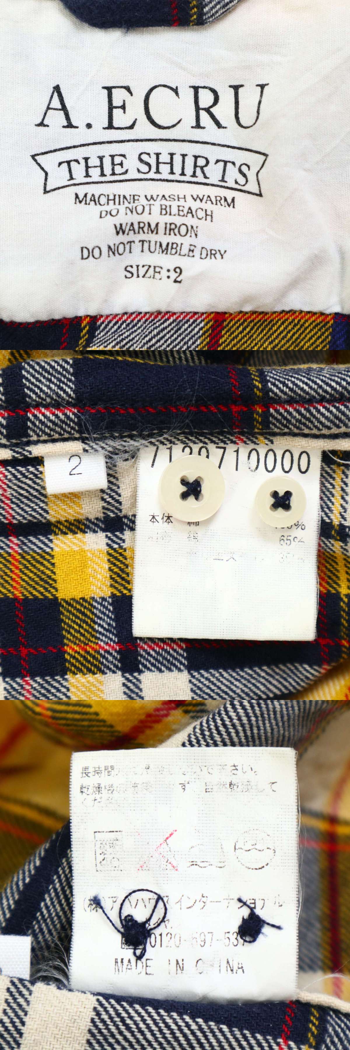 A.ECRU ABAHOUSE アバハウス 秋冬 ネル★ 長袖 チェック フランネル ボタンダウン シャツ Sz.2 メンズの画像7