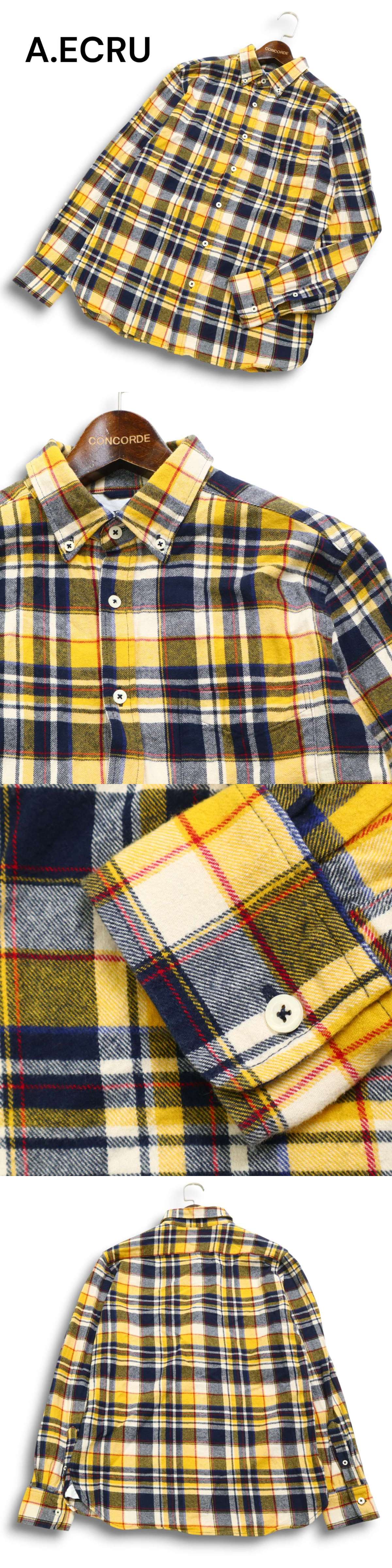 A.ECRU ABAHOUSE アバハウス 秋冬 ネル★ 長袖 チェック フランネル ボタンダウン シャツ Sz.2 メンズの商品説明