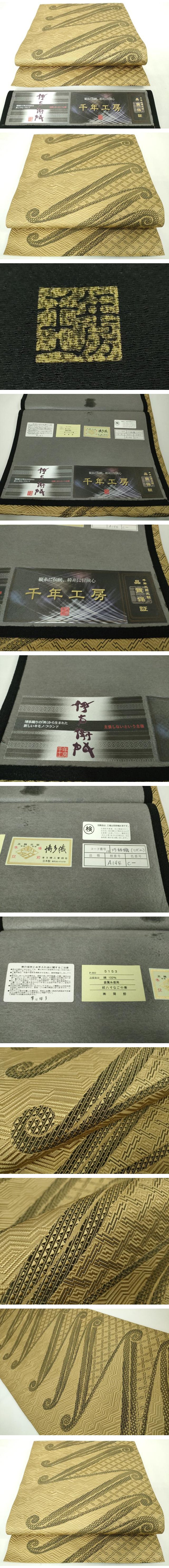 | 【正絹】 状態は締めてはおりますが 特に目立ったシミ汚れなどもなく大変良い状態です。 創業1897年博多織元・岡野の千年工房は織元としてのプライドと 技術の伝統を守りながら、ファッション進化の基本である 「新しい出会いへの冒険心」をモットーとしています。 博多織の帯はとにかく“締めやすい”のが特徴となっています。 その理由は「タテ糸が多い」ということ。 細いタテ糸をたくさん使い、太いヨコ糸を強く打ち込むことで ハリとコシが出て、きちんと締まりくずれにくい帯となるのです。 大変上質な極上の逸品になります。 お安く出品致しますので、是非この機会にいかがでしょうか?
