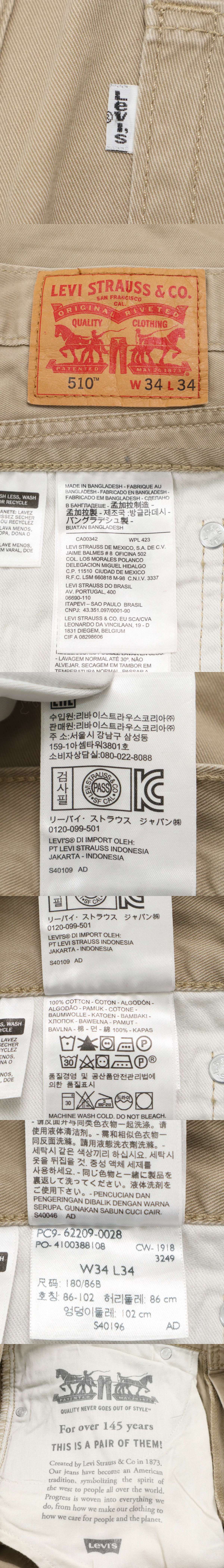 Levi's 510 リーバイス 62209-0028 通年★ ストレート デニム パンツ ジーンズ Sz.34 メンズ 大きいサイズの落札結果