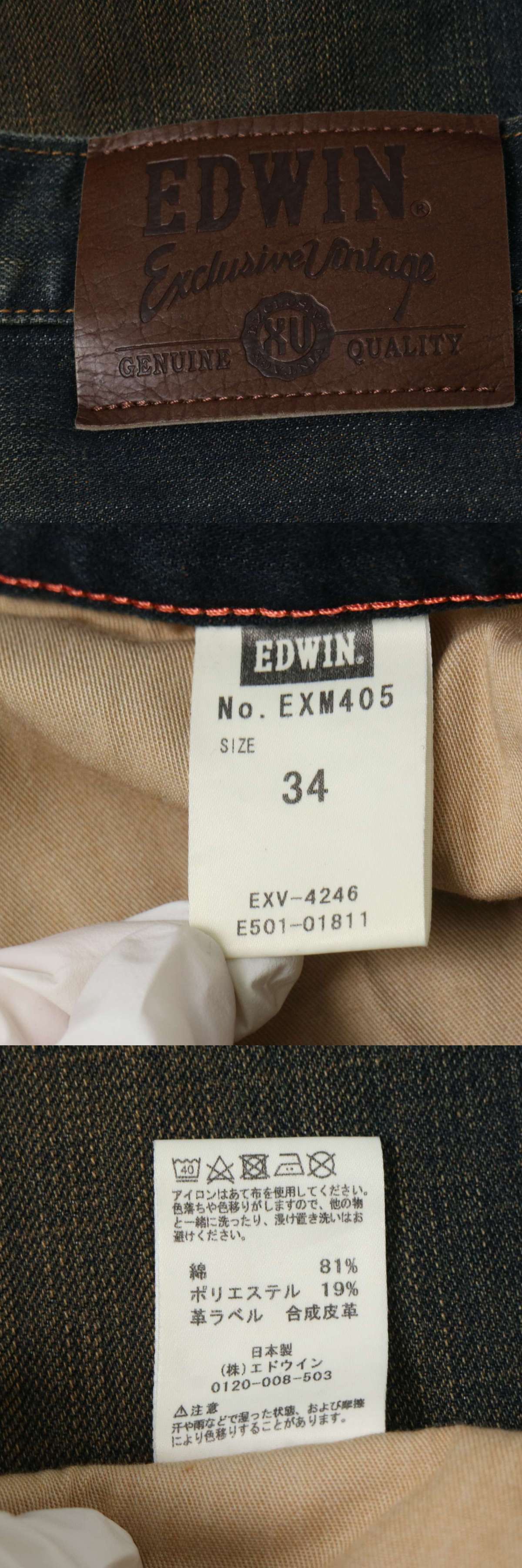 EDWIN エドウィン EXM405 USED加工★ XVシリーズ デニム パンツ ジーンズ Sz.34 メンズ 日本製 大きいサイズの落札結果