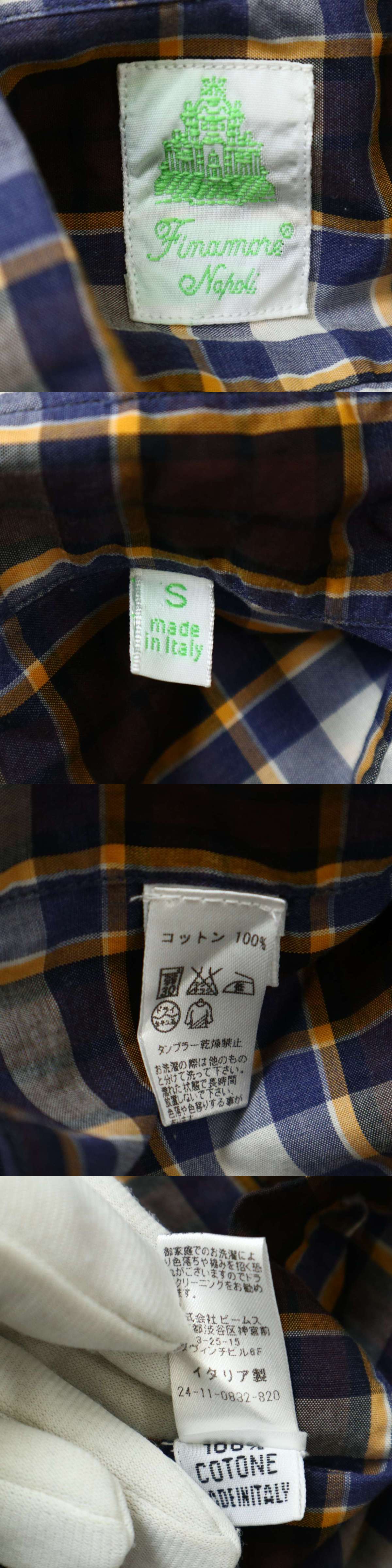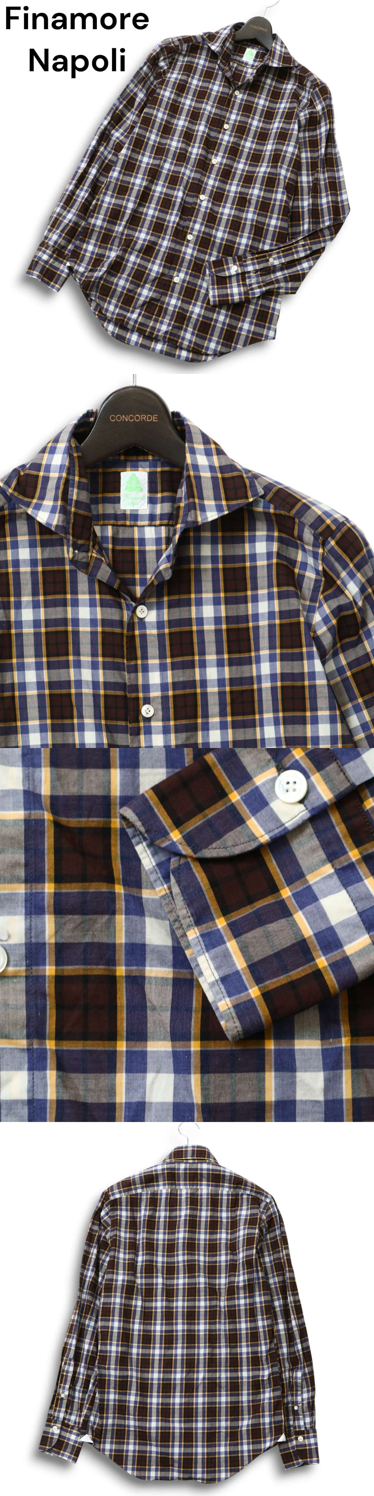 イタリア製★ Finamore Napoli フィナモレ 通年★ ホリゾンタルカラー 長袖 チェック シャツ Sz.S メンズの落札結果