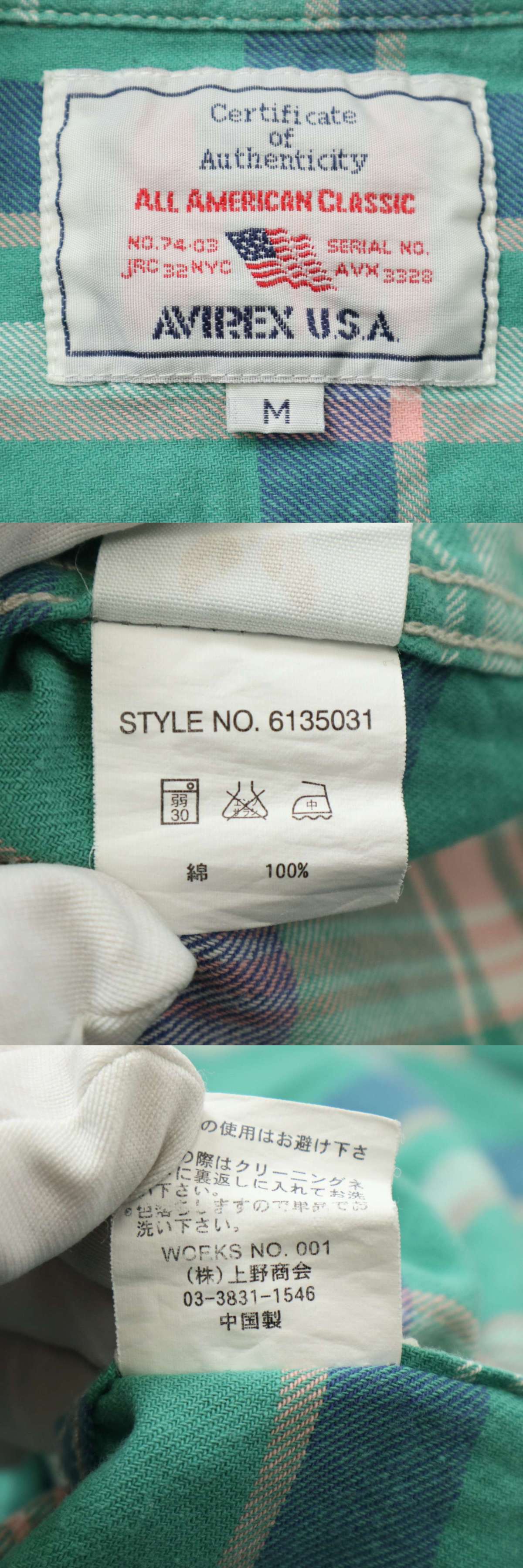 AVIREX アヴィレックス 通年★ 長袖 チェック ワーク シャツ Sz.M メンズ 緑の落札結果