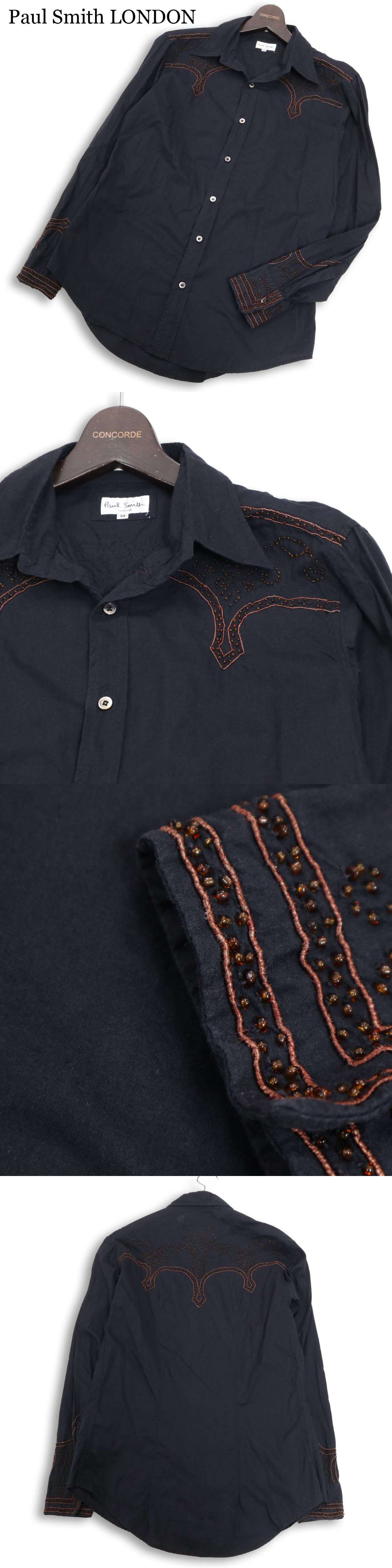 Paul Smith LONDON ポールスミス ロンドン 通年 ビーズ装飾★ 長袖 デザイン ウエスタン シャツ Sz.M メンズ 黒の落札結果