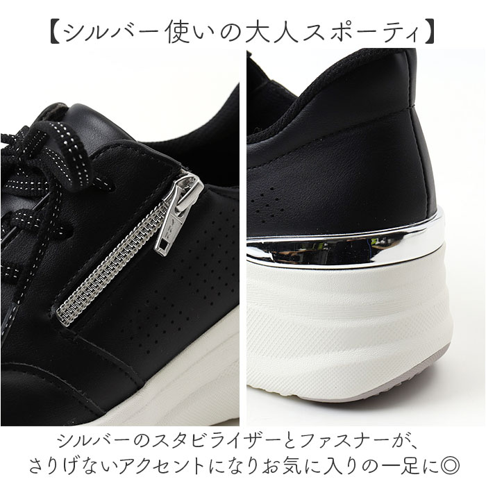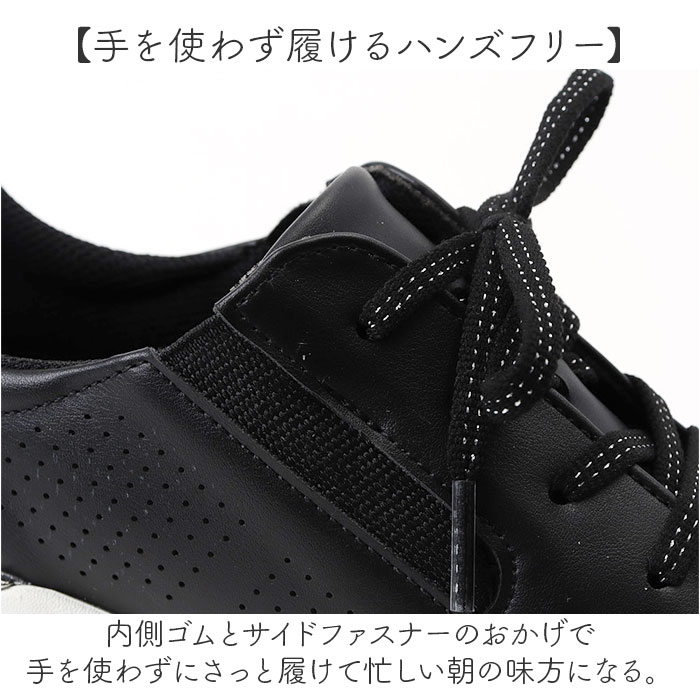 | 商品説明 | ・・【毎日のお出かけに】 ・ハンズフリーで履ける厚底スニーカーで気分が上がる。 ・【シルバー使いの大人スポーティ】 ・シルバーのスタビライザーとファスナーが、さりげないアクセントになりお気に入りの一足に◎ ・【手を使わず履けるハンズフリー】 ・内側ゴムとサイドファスナーのおかげで手を使わずにさっと履ける忙しい朝の味方になる。 ・【厚底なのに軽い足元】 ・見た目のボリューム感からは想像できないほど軽量で、長時間歩いても疲れにくい快適な履き心地! ・【滑りにくいグリップ力】 ・しっかりしたグリップ力で雨の日や濡れた路面でも安心して歩ける頼もしいソール〇 ・【取り外せるインソール】 ・クッション性の高いインソールは取り外して洗えるからいつでも清潔な状態をキープできる♪ |