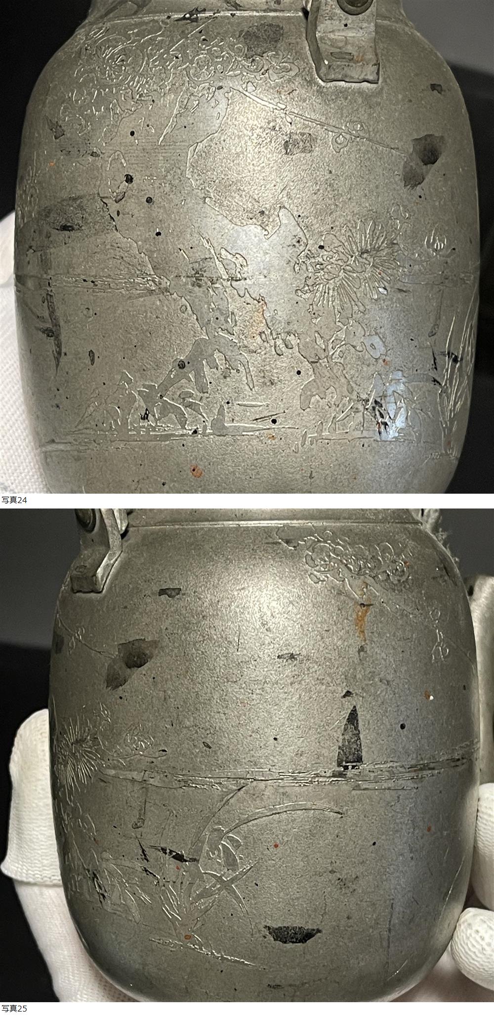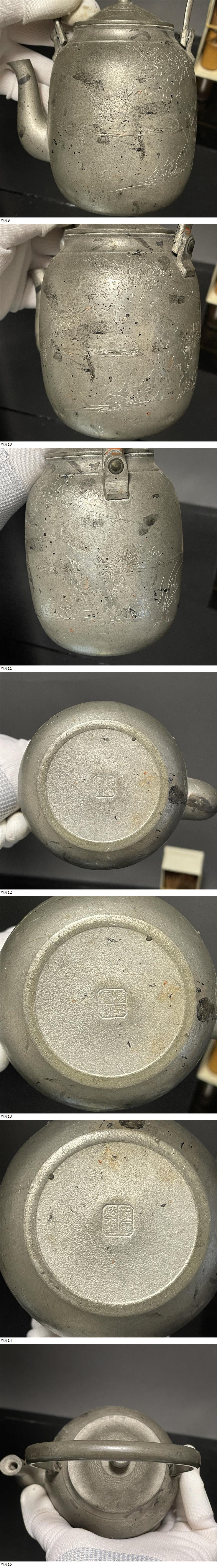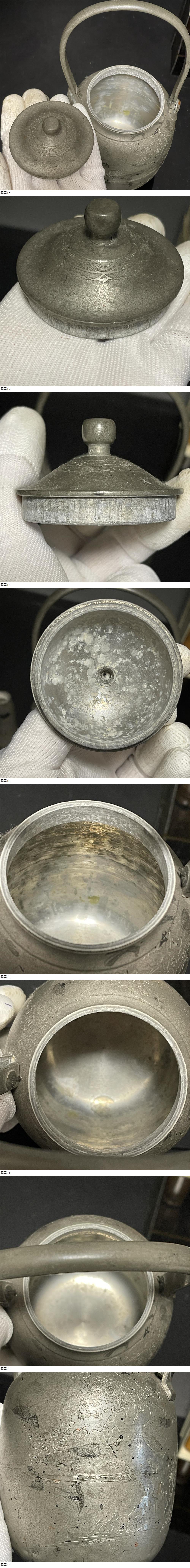 【C136】古錫 刻花 水注 在銘 茶壺 急須 錫製 細密細彫 茶道具 茶器 煎茶道具 賞物 置物