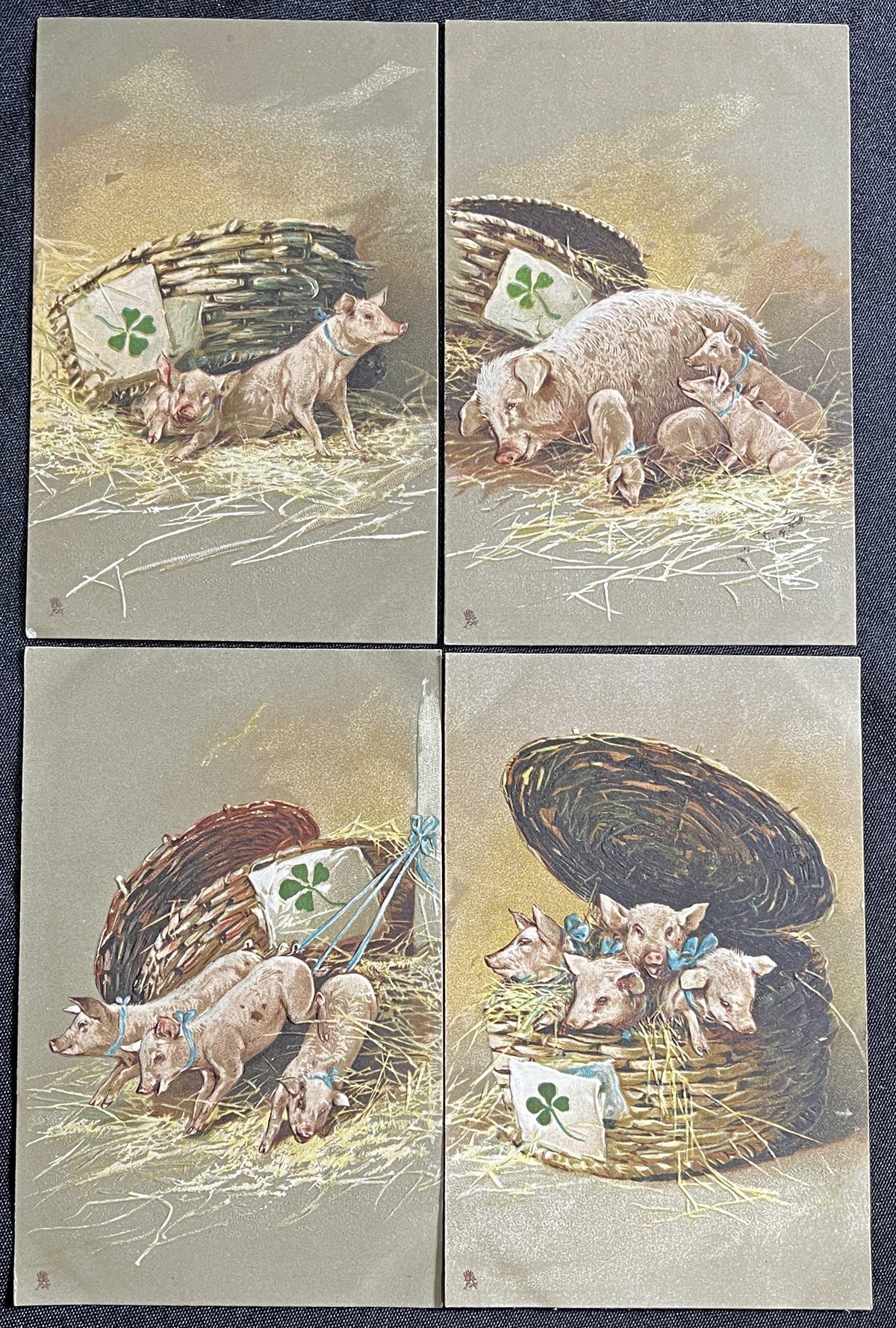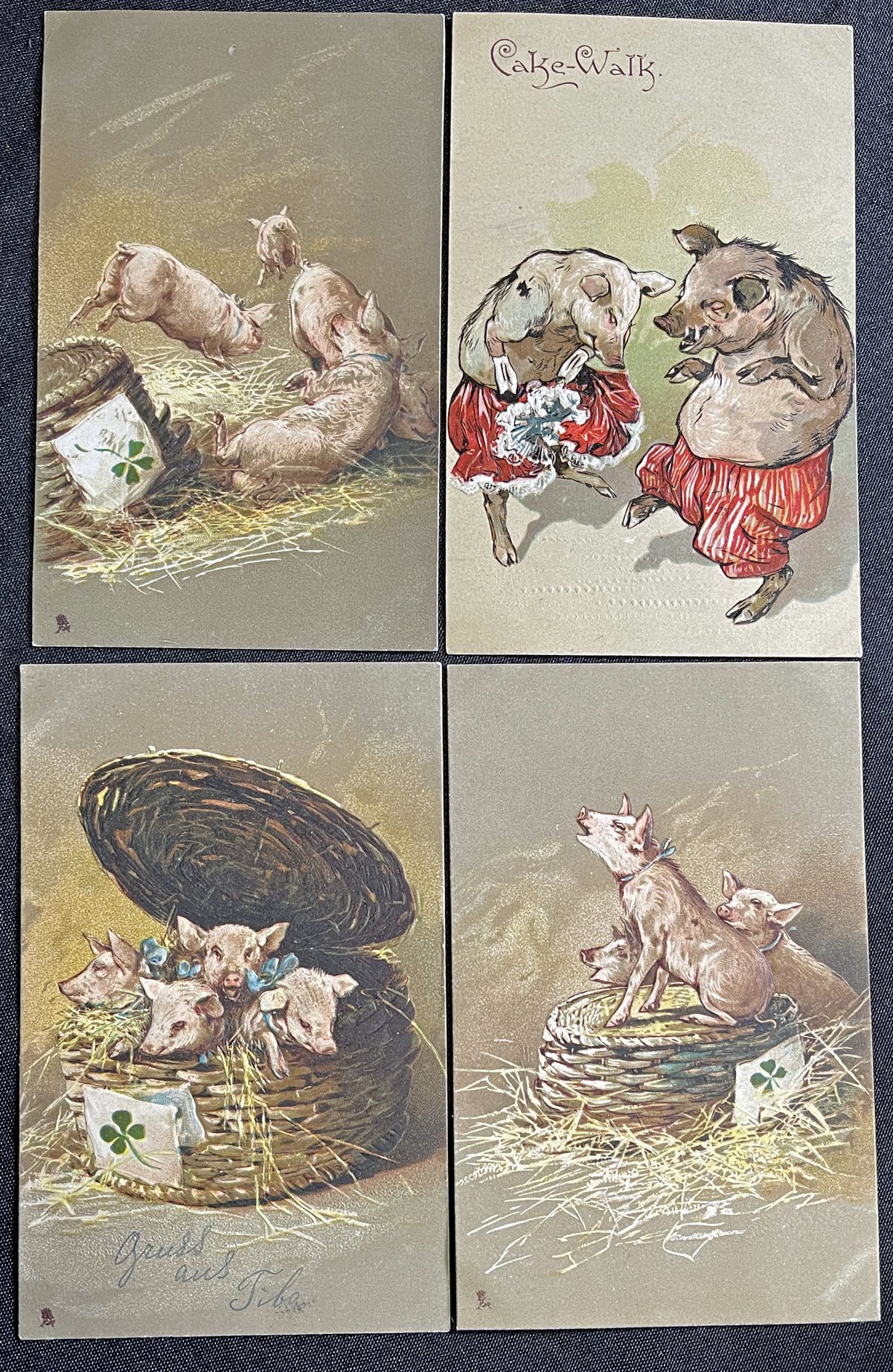 ◆アンティークポストカード22◆動物モチーフ・豚8枚 エンボス/Raphael Tuck&Sons社製他 明治期外国製絵葉書 美術・アート