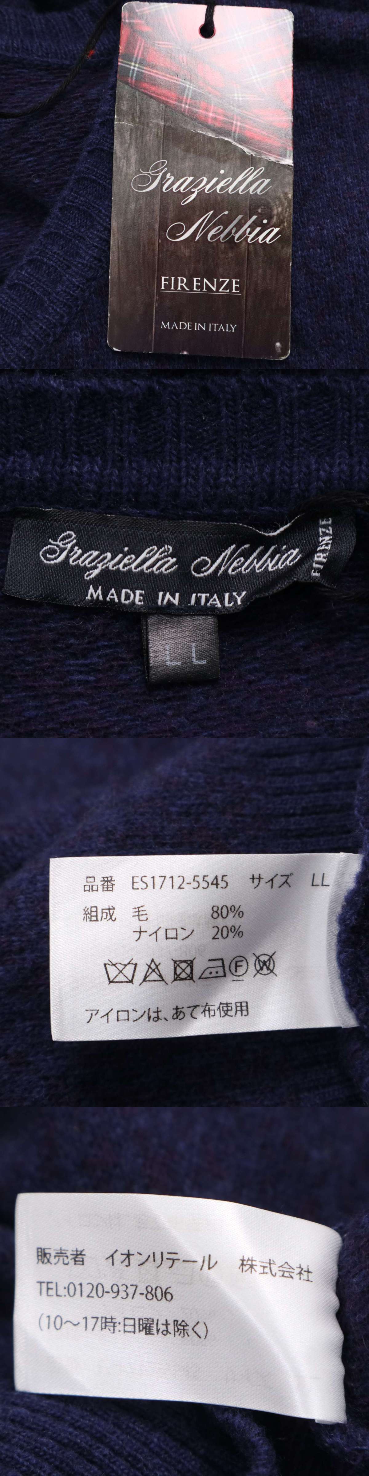 【新品 イタリア製】 Graziella Nebbia ウール★ Vネック ニット セーター Sz.LL メンズ 未使用 大きいサイズの商品説明