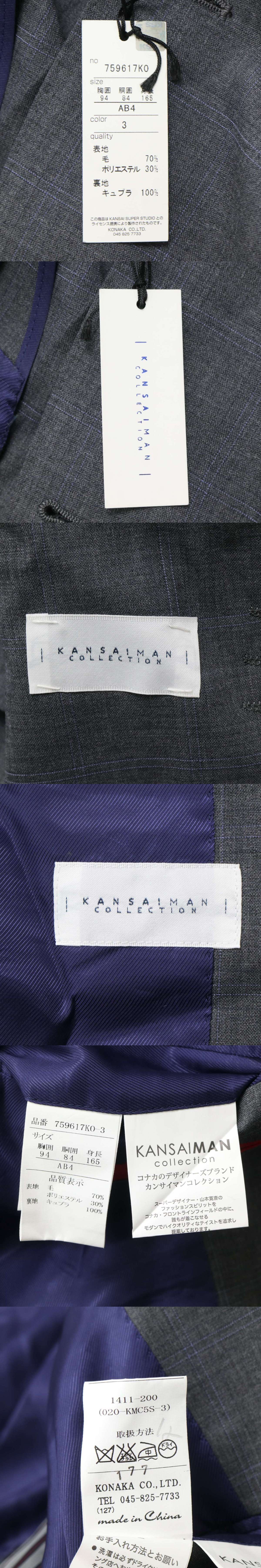 新品★ KANSAIMAN COLLECTION カンサイマン コレクション 山本寛斎 春夏 背抜き★ テーラード ジャケット Sz.AB4 メンズ 灰の落札結果