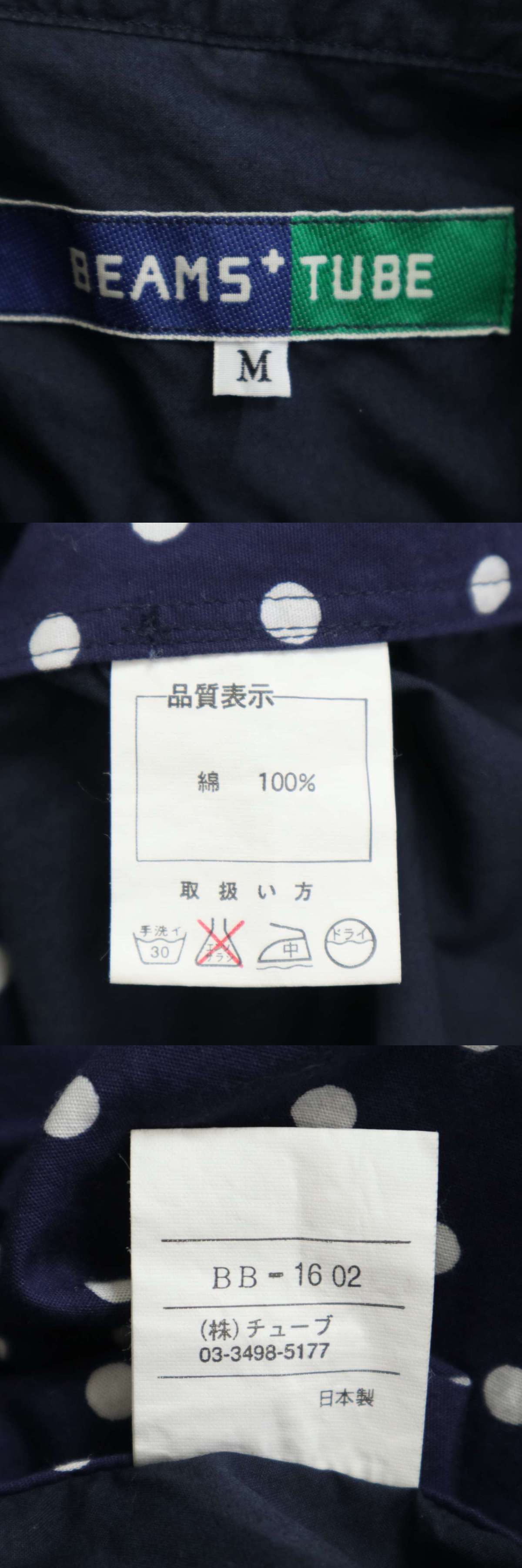 BEAMS+ TUBE ビームス プラス × チューブ 通年★ 長袖 切替 ドット シャツ Sz.M メンズ 紺 ネイビー 日本製の商品説明