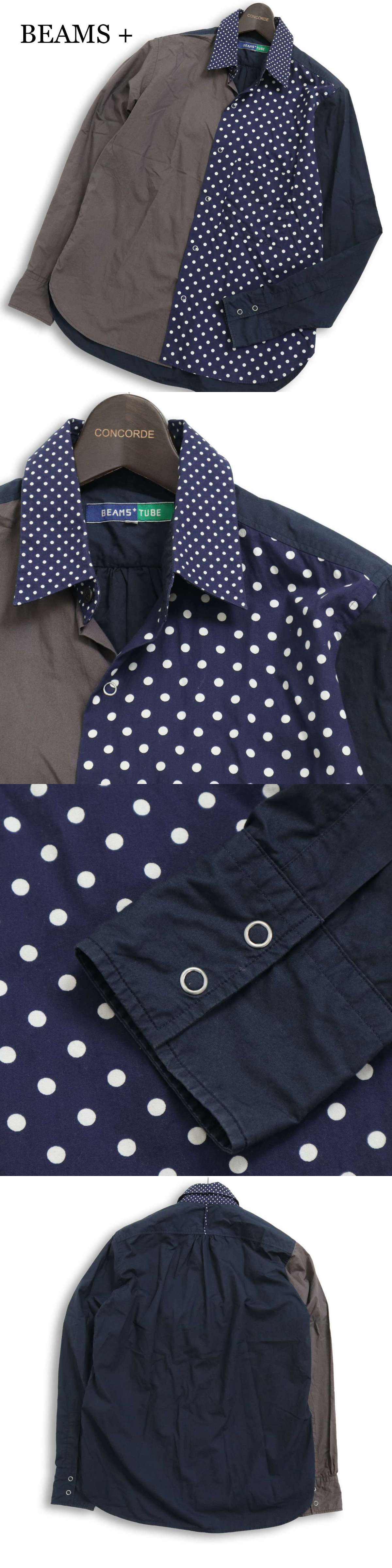 BEAMS+ TUBE ビームス プラス × チューブ 通年★ 長袖 切替 ドット シャツ Sz.M メンズ 紺 ネイビー 日本製の落札結果