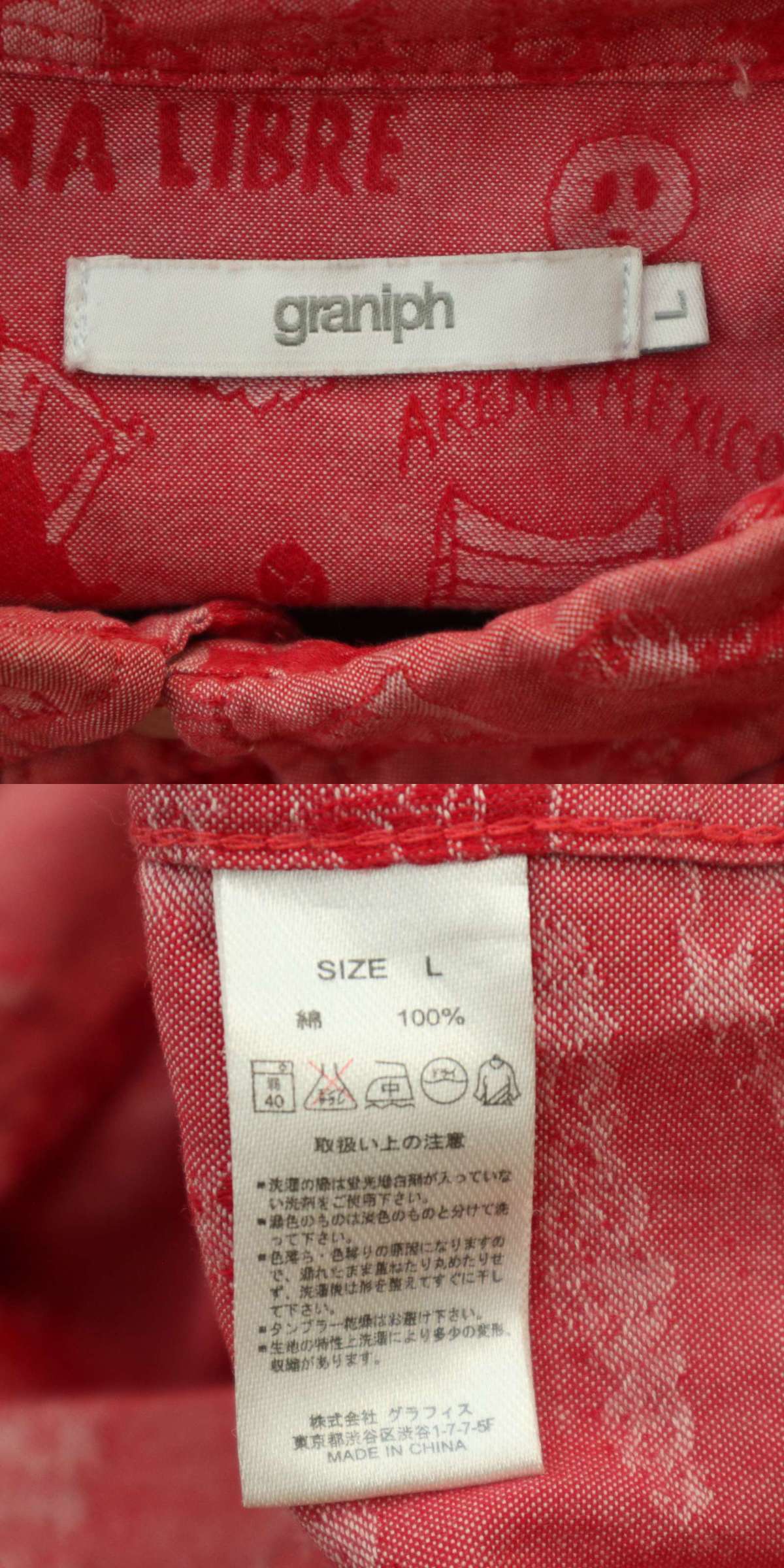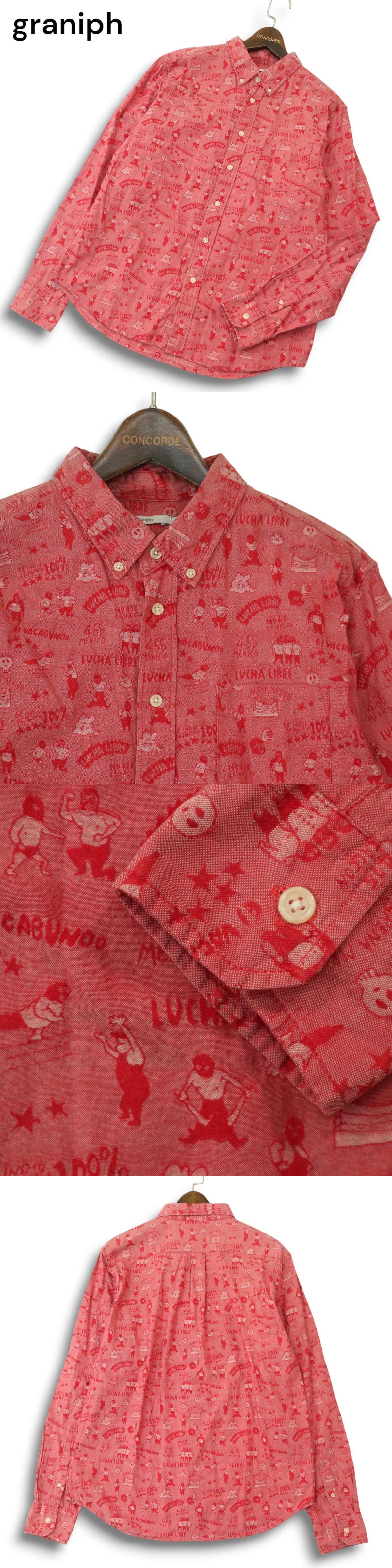graniph グラニフ 通年 LUCHA LIBRE★ 覆面レスラー 総柄 長袖 ボタンダウン シャツ Sz.L メンズの落札結果