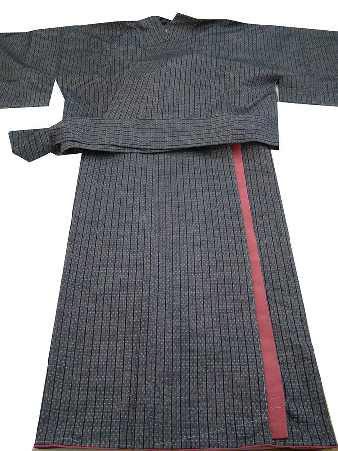 八掛も正絹。明るい小豆色。手縫い仕立。
