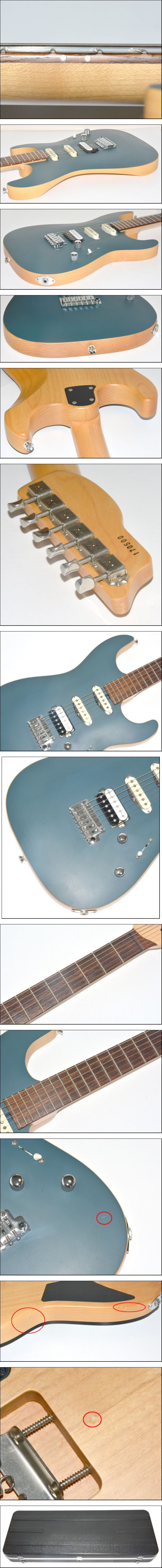 こちらはUSED品です。 ・ボディ正面に多少のスレ・キズ、打痕が見られます。 (画像にてご確認ください。) ・ボディ側面に多少のスレ、小キズ、打痕が見られます。 (画像にてご確認ください。) ・ボディ背面、底面に多少のスレ、小キズ、打痕が見られます。 ・ネックに多少のスレ、小キズが見られます。 ・ネックジョイントに多少の塗装クラックが見られます。 ・ヘッドに多少のスレ、キズが見られます。 ・指板に多少のスレ、小キズが見られます。 ・ペグ・ブリッジ・ジャック等金属部分に多少のスレ、小キズが見られます。 ・ピックアップにスレ、小キズが見られます。 ・ノブに多少のスレ、小キズが見られます。 ・セレクタースイッチに多少のスレ、小キズ、割れが見られます。 ・ネジに多少のスレ、小キズが見られます。 ・ネックプレートに多少のスレ、小キズが見られます。 ・バックプレートに保護フィルムが貼付されています。 ・ケースにスレ、キズ、汚れ等が見られます。 全体的に多少のスレ、キズ、打痕が見られますが、 上記の点以外に特に目立ったキズ、ダメージは見られない状態です。 ネックはほぼストレートの状態です。 (現在の弦高は12Fで、1弦側:約1.5mm、6弦側:約2.0mm) 重量:約2.9kg、ナット:約41mm、スケール:約646mm |