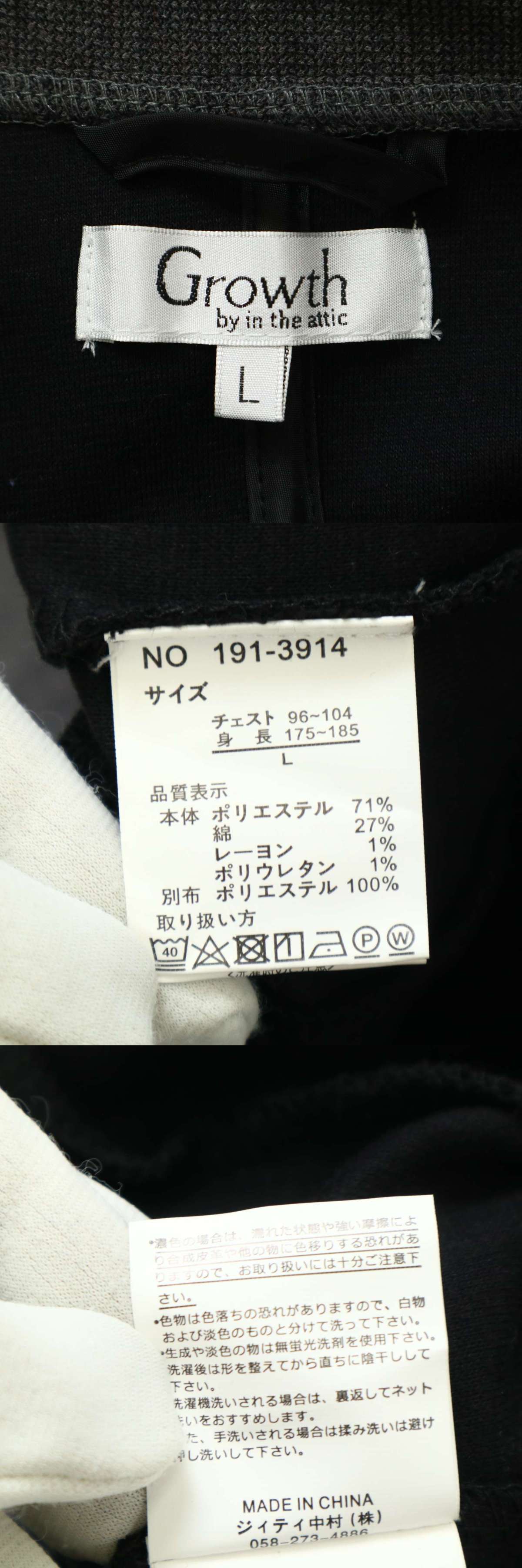 growth in the attic インジアティック 通年 スタンドカラー★ スリム ジャケット Sz.L メンズ 黒の落札結果