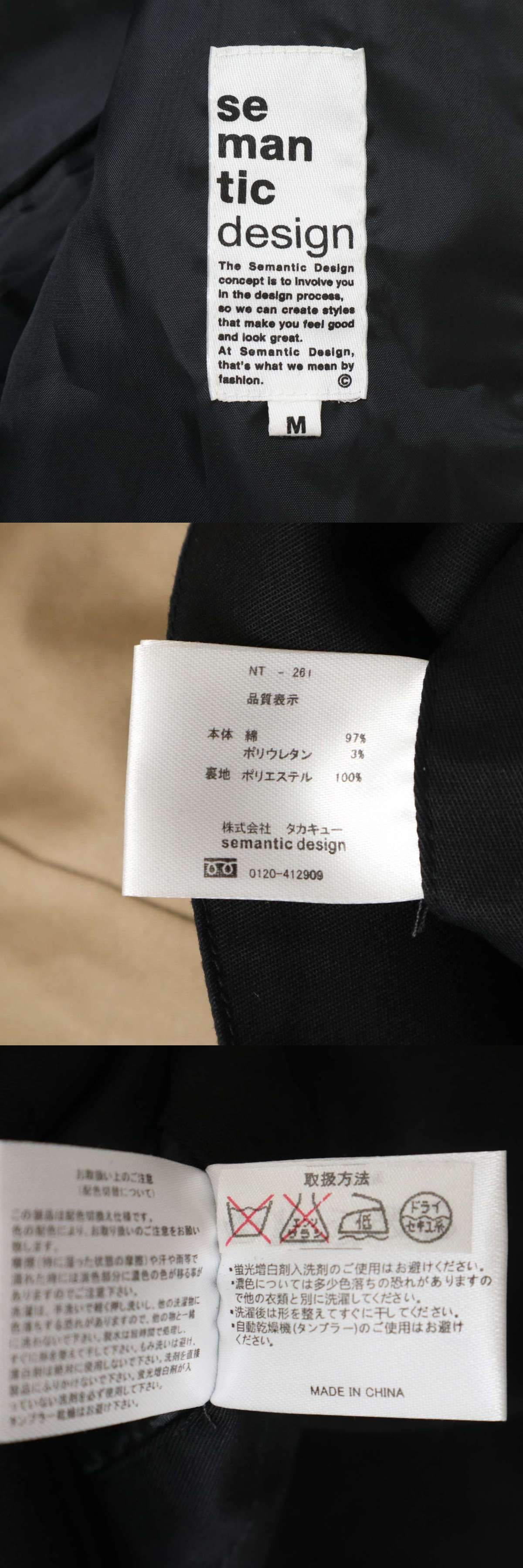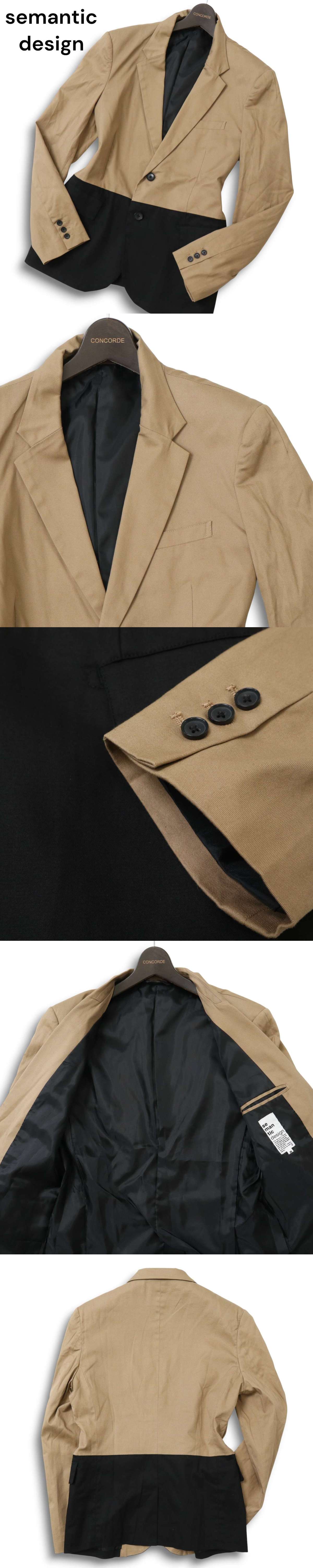 semantic design セマンティック デザイン 通年 総裏★ バイカラー スリム テーラード ジャケット Sz.M メンズの落札結果