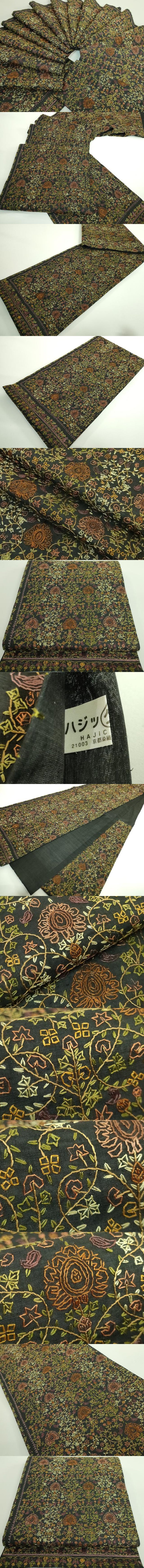 平和屋着物■極上 六通柄袋帯 総刺繍 刺し子 洋花文 黒地 逸品 DZAA8966kh5の落札結果