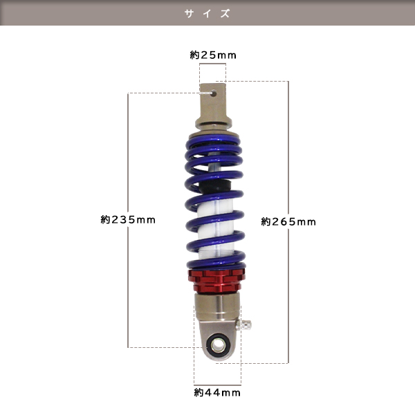 ジョグZR 3YK 3KJ 3YJ SA16J アプリオ 4JP 4LV ビーノ 5AU SA10J エボ VOX SA31J リア ショック サス 全長260mm 穴~穴235mm 調整フックの