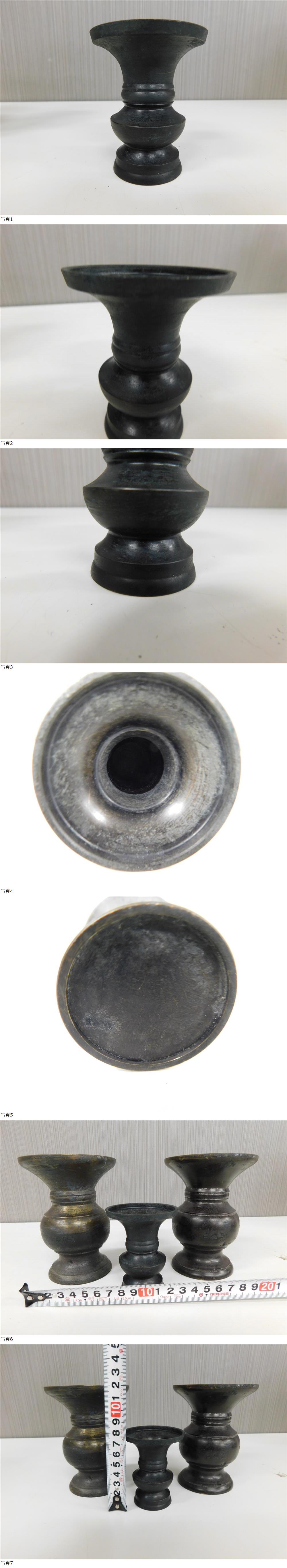 仏具 3点まとめて 香炉 蝋燭立て 花瓶 仏壇 道具 高建寺刻印あり 古道具 ろうそく 花びん 灰入れ 金属製 真鍮 現状品 激安1円スタートの落札結果