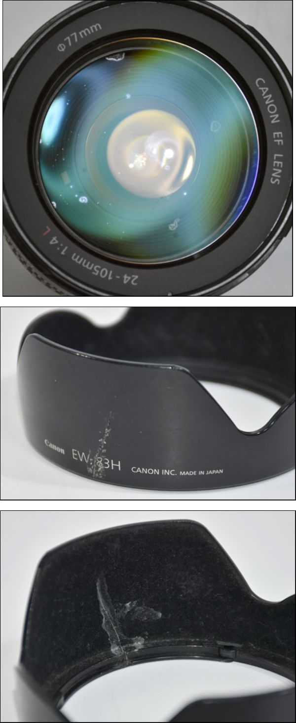 こちらはUSED品です。 ・レンズ側面にスレ、小キズ、多少の汚れ等が見られます。 ・ラバーにスレ、多少の汚れが見られます。 ・レンズ接点にスレ、小キズ、多少のくすみが見られます。 ・レンズフード取付部にスレ、汚れが見られます。 ・キャップにスレ、キズ、汚れ等が見られます。 ・レンズフードにスレ、キズ、汚れ、割れた箇所を補修した跡等が見られます。 (画像にてご確認ください) 全体的にスレ、小キズ、汚れ等が見られますが、 上記の点以外に特に目立ったキズ、ダメージ等は見られない状態です。 レンズ内部にはチリ、ホコリ、カビ、曇りが見られます。 当社にて撮影、確認を行いましたが写りこみは見られませんでした。 |