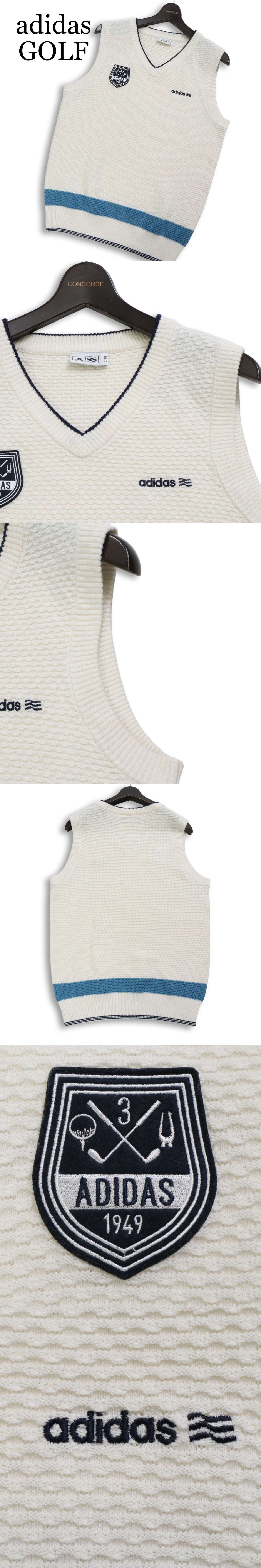 adidas GOLF アディダス ゴルフ 秋冬 ロゴ ワッペン ウール混★ Vネック ニット ベスト Sz.O メンズ 白 大きいサイズの落札結果