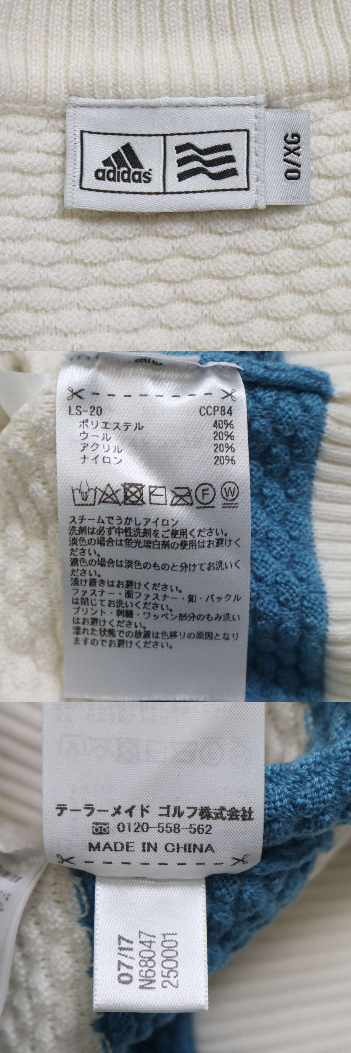 adidas GOLF アディダス ゴルフ 秋冬 ロゴ ワッペン ウール混★ Vネック ニット ベスト Sz.O メンズ 白 大きいサイズの画像8