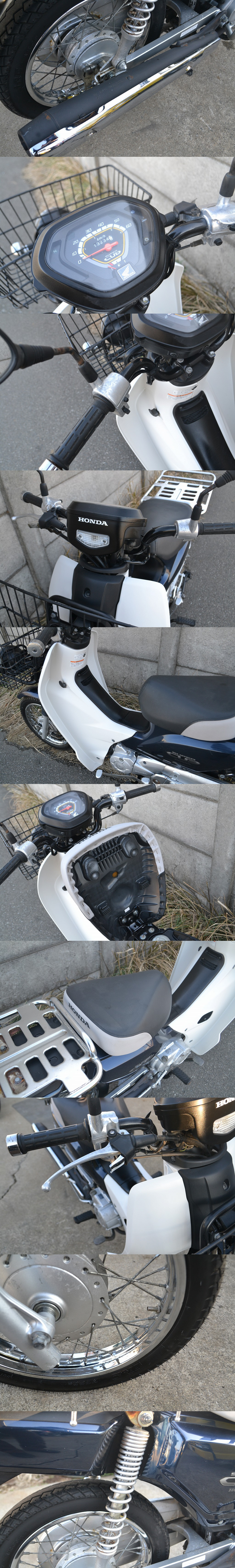 | □車両説明 ホンダ スーパーカブ50プロ AA04 14インチ 配達などに 小回りのきく前後14インチに大型荷台&カゴを装着した配達仕様のカブ50プロです。 ・エンジン エンジンはセル&キックで始動します、白煙などもなくふけ上がりもスムーズです。 ありがちな始動から暖気後までのガサガサ音もなく静かなエンジンかと思います。 オイル交換してあります。 ・足廻り/電装 灯火類の作動OKです。 バッテリー、前タイヤは新品です。リアの山もあるのでしばらくはこのまま走れます。 シートもヘタリ感なくカッチリとした状態です。 ・外装 割れなどもなく良好です、レッグシールドもツルツルで粉吹く劣化などは見られません。 荷台、リアサス、車体にサビなどあります。 ◇車両情報 ・メーカー/車名 ---- ホンダ スーパーカブ50プロ ・排気量 ---- 50㏄ ・車体番号 ---- AA04-3205*** ・走行メーター距離 ----13236㎞ ・色 ---- 紺 ・キー ---- 1本 ・書類 ---- 有り ・付属品 ---- 無し ◇備考 4速ギアの不具合もなく普通に走行します、ブレーキ動作も良好でした。 現車を確認して状態をご確認頂くと間違いがないと思います。 廃車済みですので登録してすぐに乗り出せると思います、こちらで5㎞程度は乗りましたが元気に走行します。 必要に応じた点検やメンテナンスを視野に入れて頂ければと思います。お急ぎの方もなるべくこちらが配送に行ける範囲は別途動けますので質問よりお願い致します。 走行多くなく仕事に使用するのには良い車両です、よろしくお願い致します。 ◆◆ お取引について注意事項 ◆◆ ・当方の車両は簡単な目視でのチェック、敷地内または至近距離の試乗のみの出品になります。 ・ご入札前の質問や価格のご相談などは質問欄にアドレスを頂ければ非公開にてご連絡致します、メールの方は gepper003@gmail.com までご連絡をお願いします。 ・中古車とは原則的に「前オーナーが使い古し手放した中古車の現状・未整備渡し」ですのでこちらが気が付かない不具合等が潜んでいる可能性も否めません。ご使用後すぐに消耗品の交換が必要な場合やレギュレーターや電球などの球切れなど交換の必要がある車両も極稀にあります。そのような場合でも、あくまでも現車を優先と致します。悪意は御座いませんが、悪しからずご理解、ご了承ください。 ・中古車両になりますので引き取り時に約束事についての書面にサインと捺印を頂いておりますので引取り時に認め印をお持ち下さい。遠方の方は書面の郵送をもって了承して頂いたものとしてお取引を致します。 ・車両のお引渡し後(陸送業者をご利用の場合は業者に引き渡しの後)はお取引が締結したものとさせて頂きますのでよろしくお願い致します。。 ・いかなる場合でも瑕疵担保責任による修理、賠償は一切行いません。 ・感じ方には個人差があると思いますので、神経質な方は現車確認をお願いします。 ・未成年者の方はお取引が出来ません。また住所や氏名が教えられない方はお取引が出来ません。 ・新規の方や悪い評価の多い方などは当方の判断で入札を取り消します、購入意思がある方は質問欄にて入札の意思をお伝え下さい。 ・落札後にここに傷が書いていないや思っていたのと違う等との事で値引きを要求してくる方が稀におりますが、当方の車両は全て【現車確認を前提とした出品】となりますので対応致しません。 ・車両の返品や返金はいかなる場合でも出来ませんのでご理解ご了承の上お取引をお願い致します。 ※※以上の注意事項を熟読し、お約束して頂ける方のみ入札をお願いしております。入札する事により上記注意事項を全てを熟読し、了承(契約)していただいたものとみなしお取引をさせて頂きます。入札して頂いた時点でこちらの上記契約事項に従って頂きます。守れない方の入札は固くお断ります。 ●● 陸送について ●● ・遠方は大手の陸送会社を利用し、都内近郊等は個人の陸送業者等も利用しリーズナブルな陸送を致します。 ・離島などの場合はフェリーの港までの持込みも致します、持込み費用は港によって変わります。 ・陸送会社は混載便となり複数台を一度に運ぶ事で格安陸送を実現しております、配達日程や時間指定等は陸送会社の日程に沿って頂く形になりますので調整などは陸送会社にお申し付け下さい。 ・出品地域【千葉県柏市】より全国に陸送の手配を致します。 ・陸送手配の代行は無料ですが納期が遅いなどの陸送会社に対するクレームはご遠慮下さい。 □□ 引き取りについて □□ ・直接引き取りにも対応致します、当方動き回っておりますので必ず日程の調整をお願い致します。アポイント無しで来て頂いても対応ができませんのでご了承下さい。 ・車で積載される方は積み下ろしのスロープ&固定用のベルト等は必ず持参下さい。 ・落札者様本人が引き取りに来れない場合で代理の方が引き取りに来る場合は必ずその旨をお知らせ下さい、なりすまし代理人での引き取りトラブルが確認されています