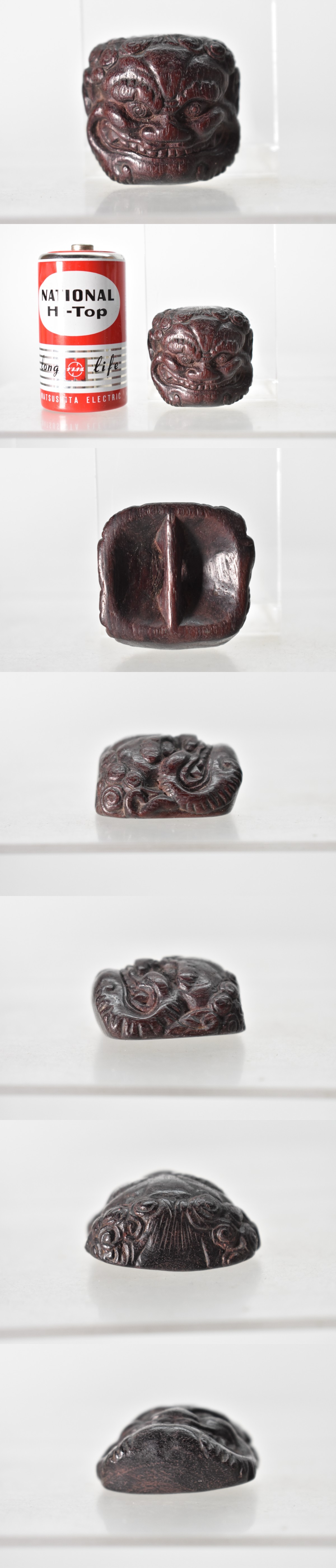 根付 獅子頭 木彫り 約3.5cm [詳細不明][魔除け][お面][キーホルダー][昭和レトロ][当時物]H