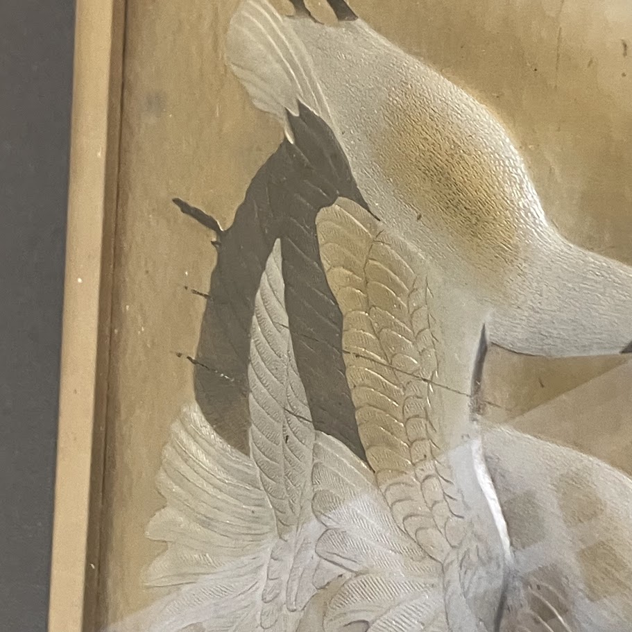 □■□■□■□ 商品説明 □■□■□■□ ■ 時代金工 井波慶州 金工板「双鶴図」 横約49cm 計1点■ 【サイズ】 縦×横:約42cm×約49cm 金工版:約21.8cm×約28.5cm 計1点 ※シミ・汚れ、台紙の歪みがあります。 額縁表面に傷があります。