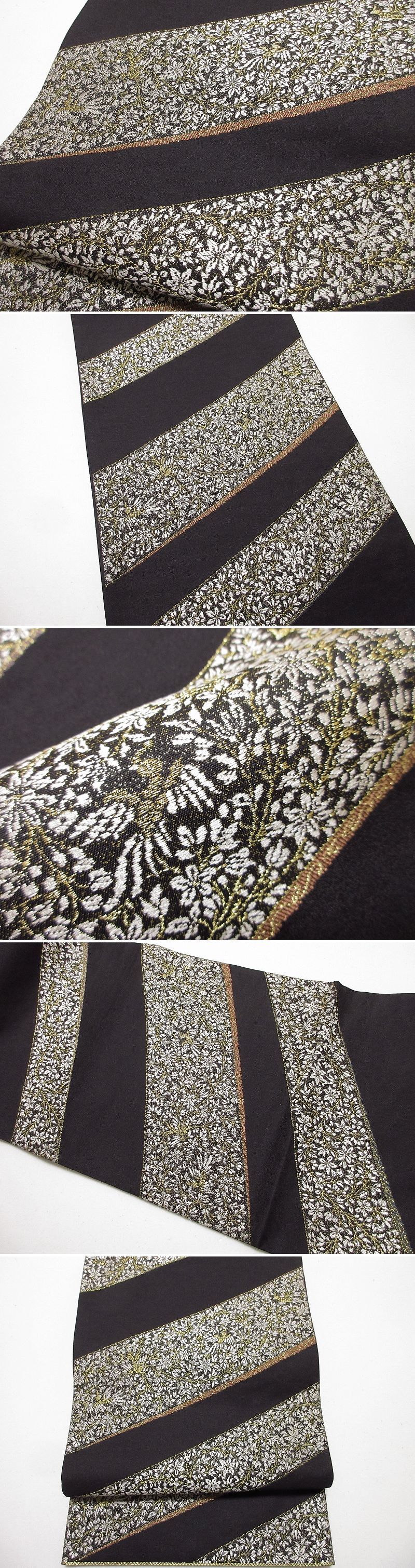 | 商品名 | ドークブア■六通柄袋帯 砂子織 黒地 斜め縞 極上の逸品 B37 |