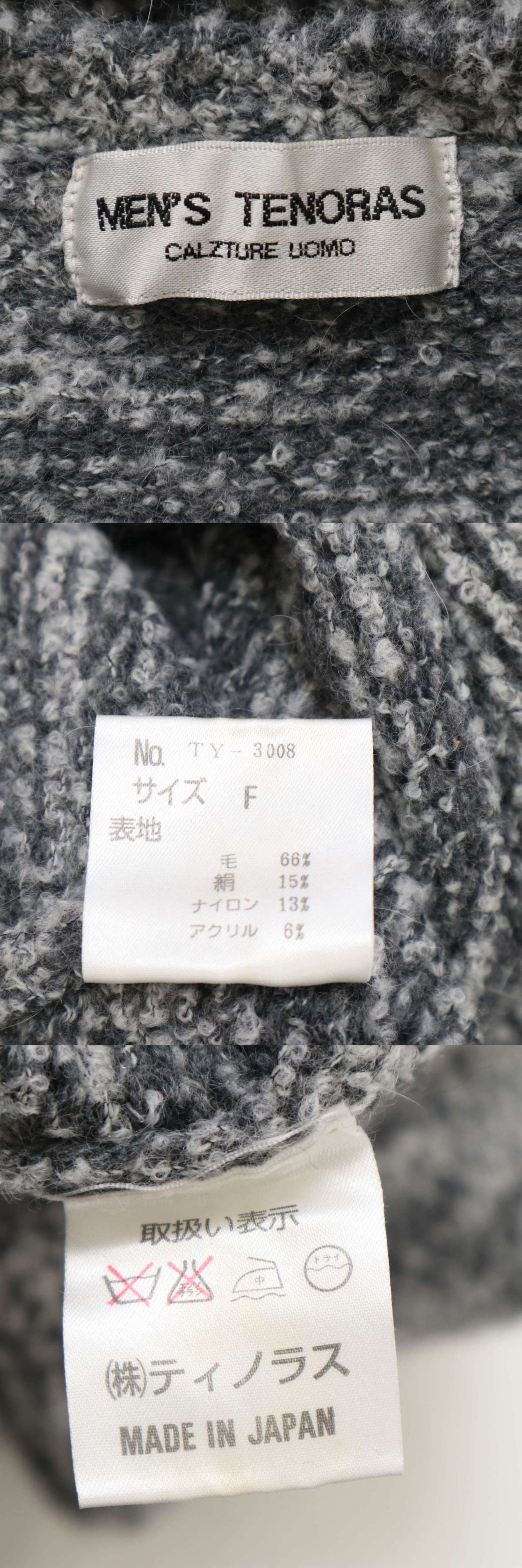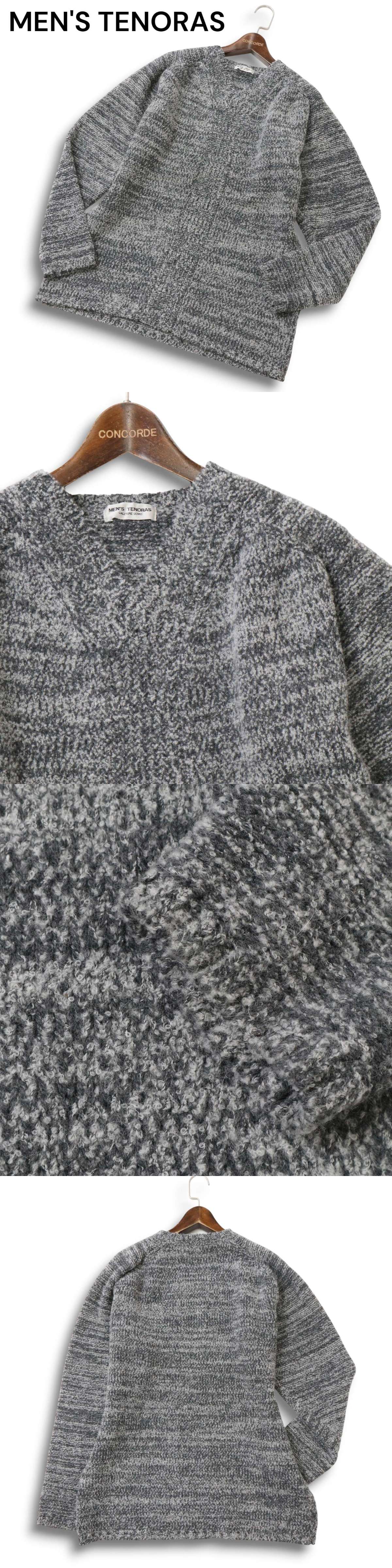 MEN'S TENORAS メンズティノラス 秋冬★ 絹 シルク混 ウール Vネック メランジ セーター ニット Sz.F メンズ グレー 日本製の落札結果