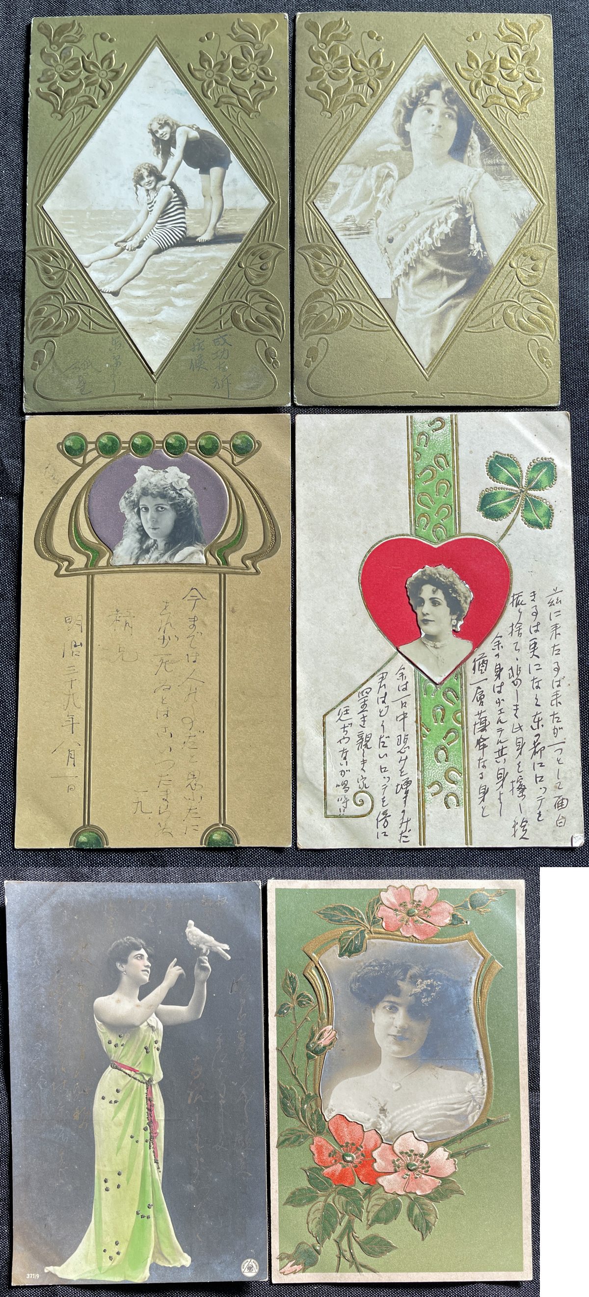 ◆アンティークポストカード29◆女性モチーフ9枚 アールヌーボー/リアルフォト/古写真 明治期外国製絵葉書 美術・アート・デザインの商品説明