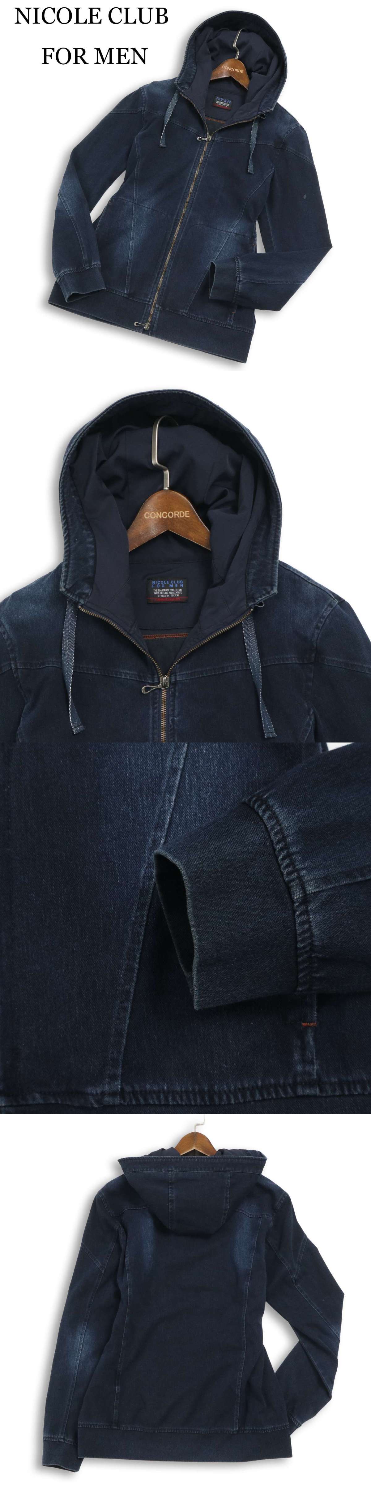 NICOLE CLUB FOR MEN ニコルクラブ フォーメン USED加工★ ストレッチ ダブルジップ デニム パーカー Sz.48 メンズの落札結果
