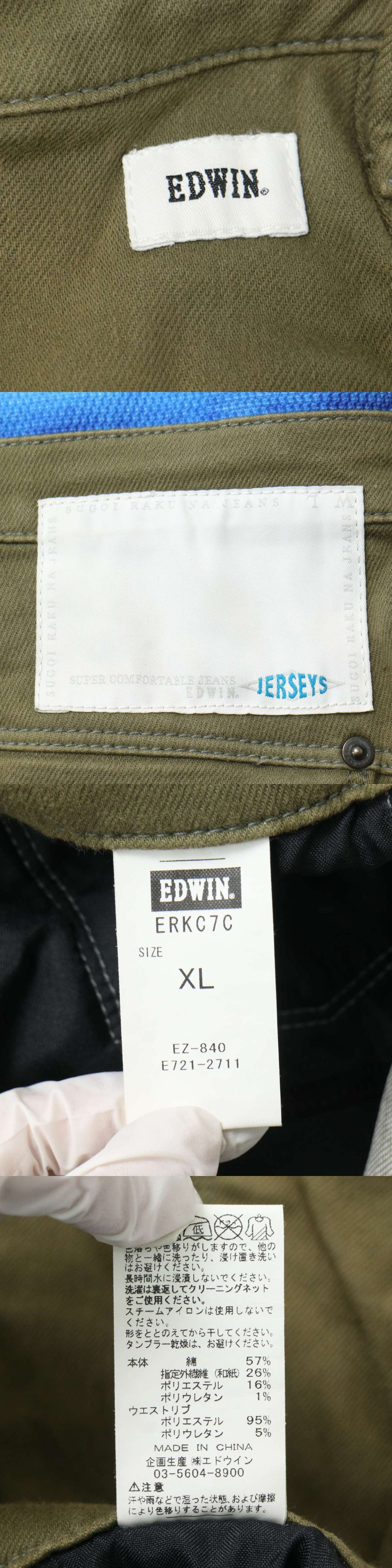 EDWIN エドウィン ERKC7C ジャージーズ★ 和紙混 イージー ストレッチ カーゴ パンツ Sz.XL メンズ 大きいサイズの画像10